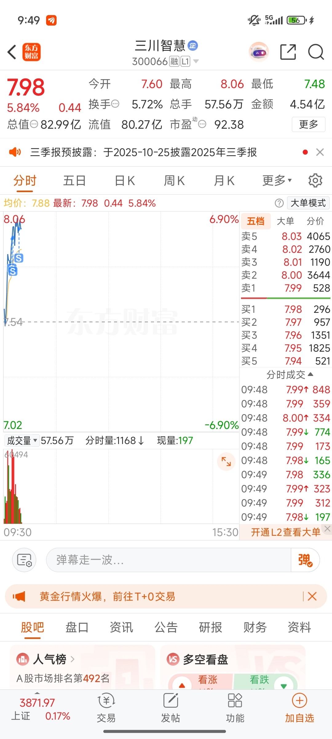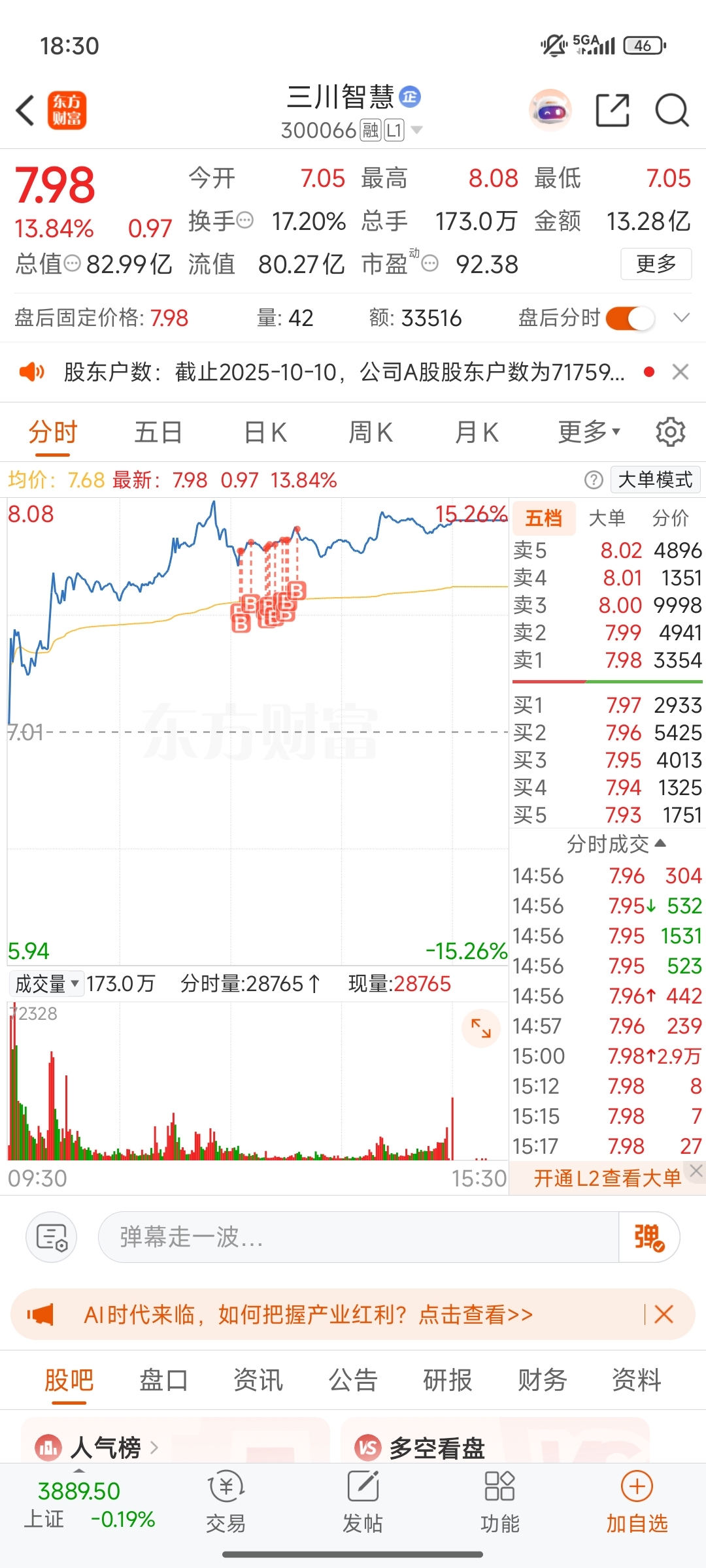 $上证指数(SH000001)$ $深证成指(SZ399001)$ $三川智慧(SZ300066)$ 这个票也是没办法,那天进了很多。结果和星徽股份一样发现内部结构技术上出现破裂。为了资金安全,所以坚决出掉。