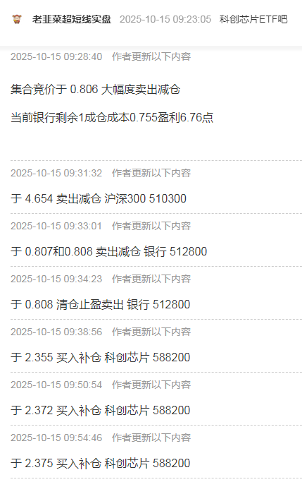10.15--老韭菜实盘记录:昨天重仓埋伏,今天成功赚钱了。明天早盘冲高打算兑现
