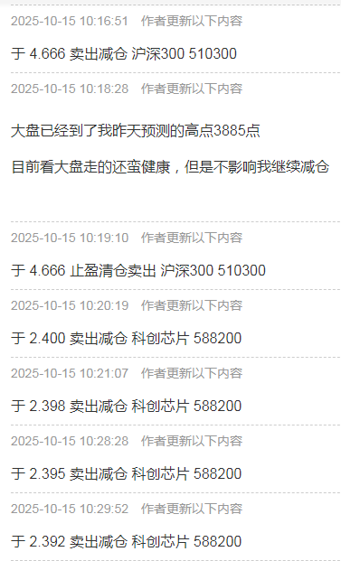 10.15--老韭菜实盘记录:昨天重仓埋伏,今天成功赚钱了。明天早盘冲高打算兑现利润。周四周五都看空大盘,明天早上大概率就是冲高至3920点附近回落。当然这只是为了指导交易提前制定的策略,明天盘中再根据走势随机应变。