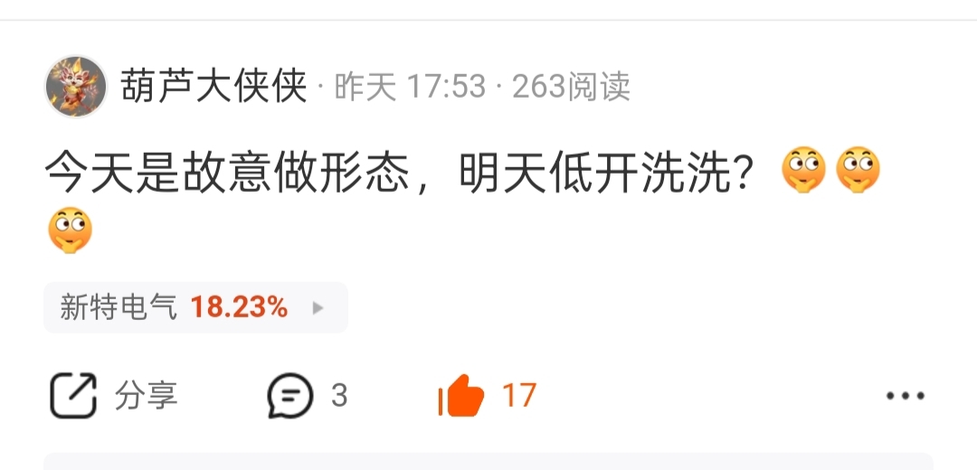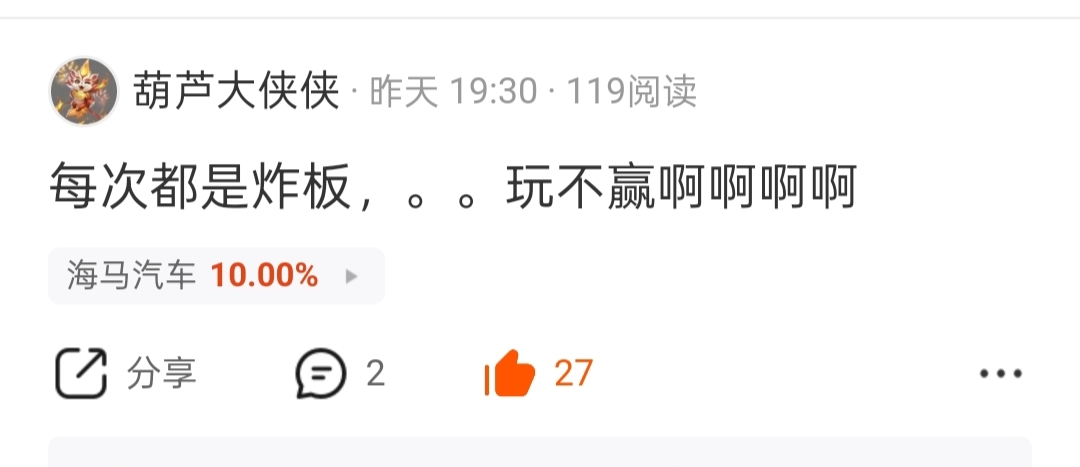 温馨提示: 1.根据《证券法》规定,禁止编造、传播虚假信息或者误导性信息,扰乱证券市场;2.用户在本社区发表的所有资料、言论等仅代表个人观点,与本网站立场无关,不对您构成任何投资建议。用户应基于自己的独立判断,自行决定证券投资并承担相应风险。《东方财富社区管理规定》