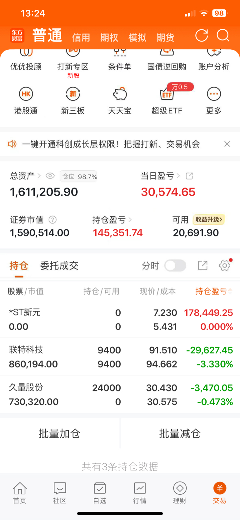 第81天实盘记录|50W投资历程分享今作:•买入:久量股份•卖出:ST新元•持仓