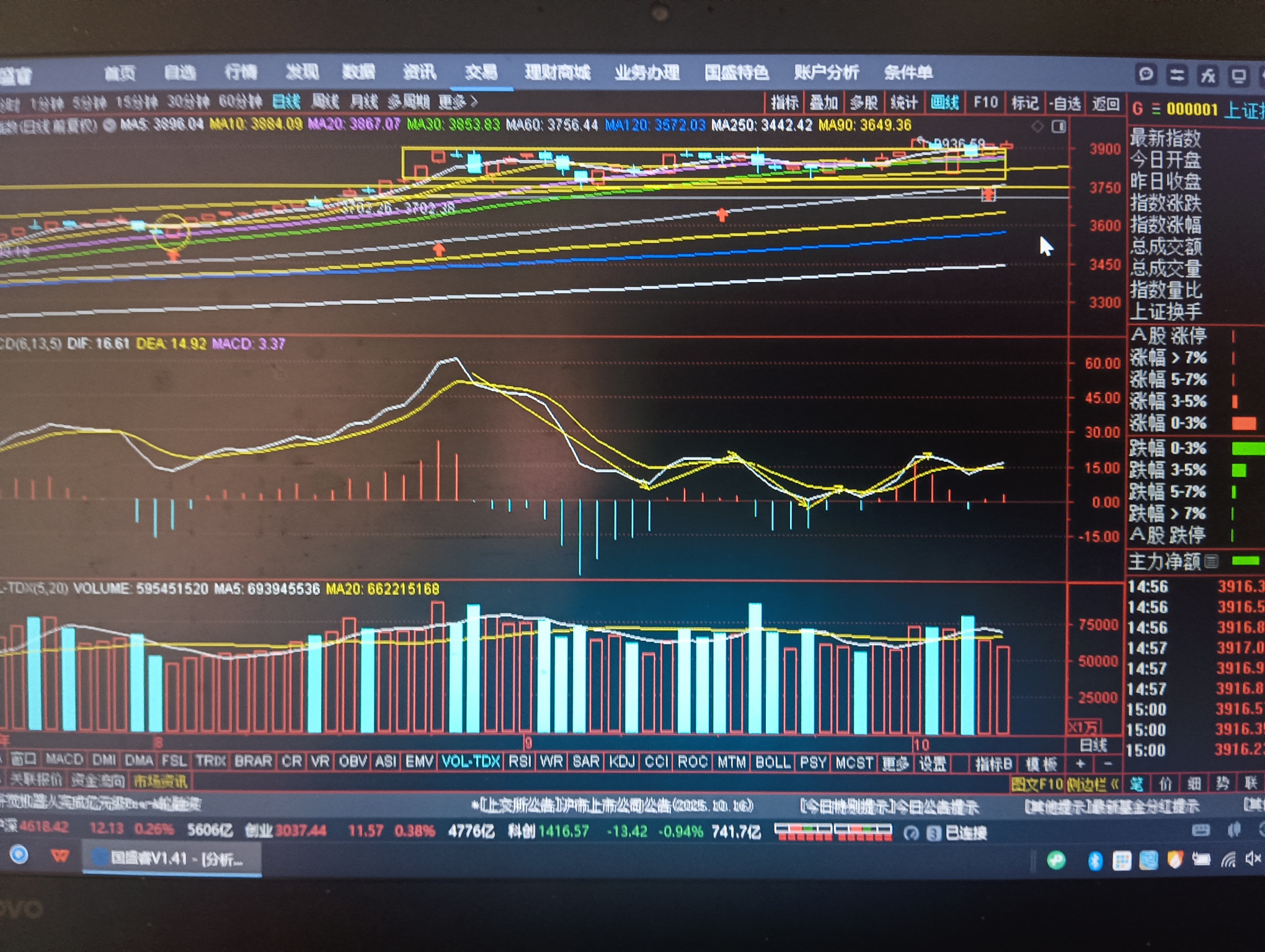 三哥又说:上图是上证日级别的区域振荡图示、在此区域里运行了33天、这数很敏感、它