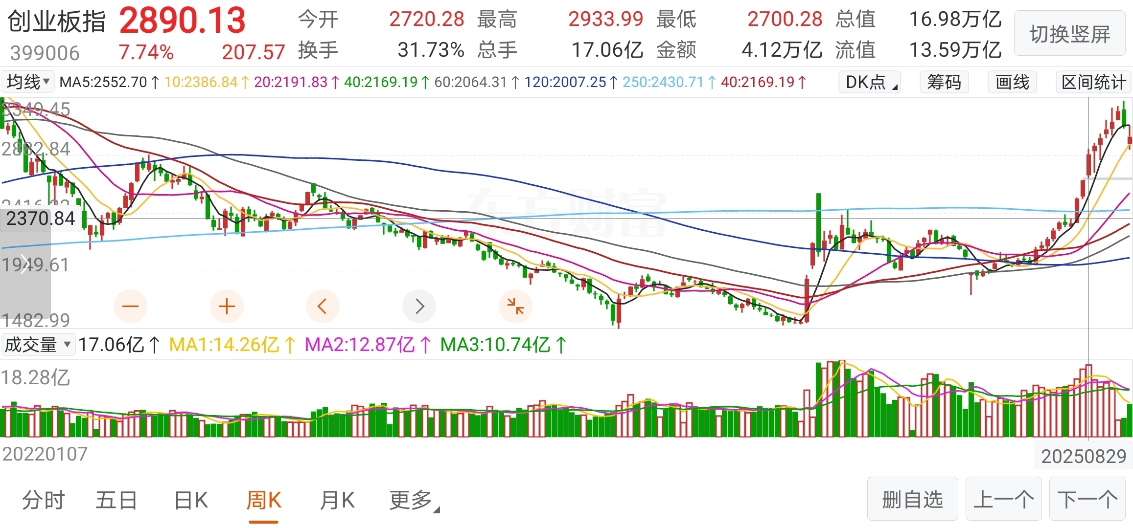 市场主力干不干活怎么看?我就主要看成交量!我们从上图可以看到,上证指数和创业板周线成交量在8月底已经见顶,那么接下来的时间,虽然短线级别上虽然日线一直在高位震荡,但主要趋势行情已经休息,反映到盘面上,就是银行股,医药等板块已经开始回调!