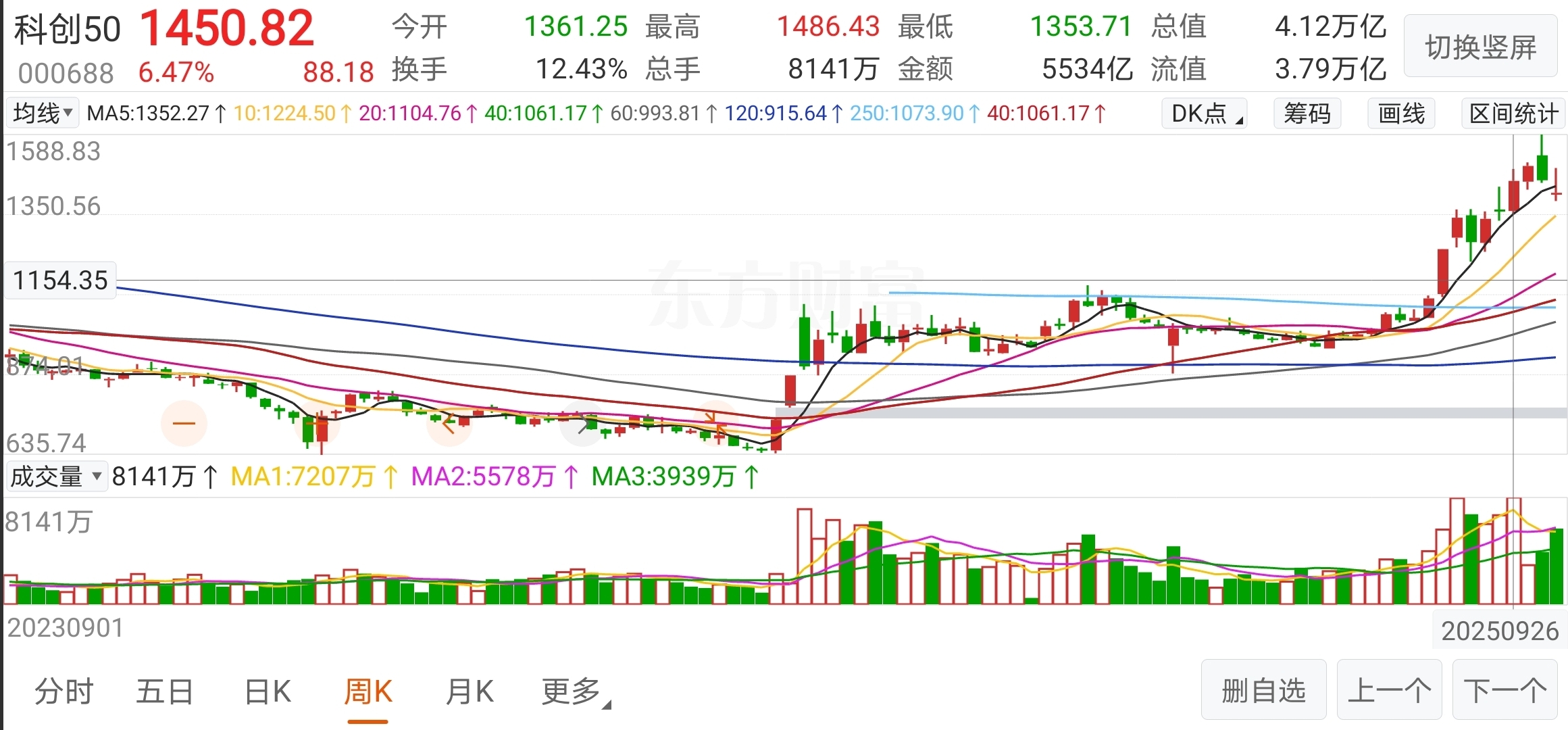 我们就看到科创板周线图在9月底成交量到了峰值!也开始休息!当时我发文“小心科技股”提醒了大家!