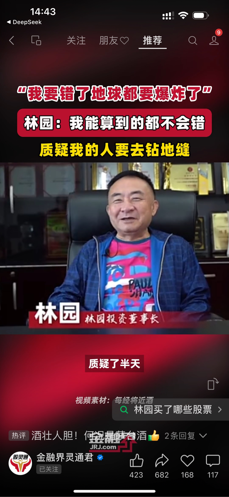 这番自信满满的发言在短视频平台迅速传播,网友评论两极分化。有网友调侃道:“酒壮人胆!何况是茅台酒”,暗示林园的投资信心如同喝了茅台一样亢奋。