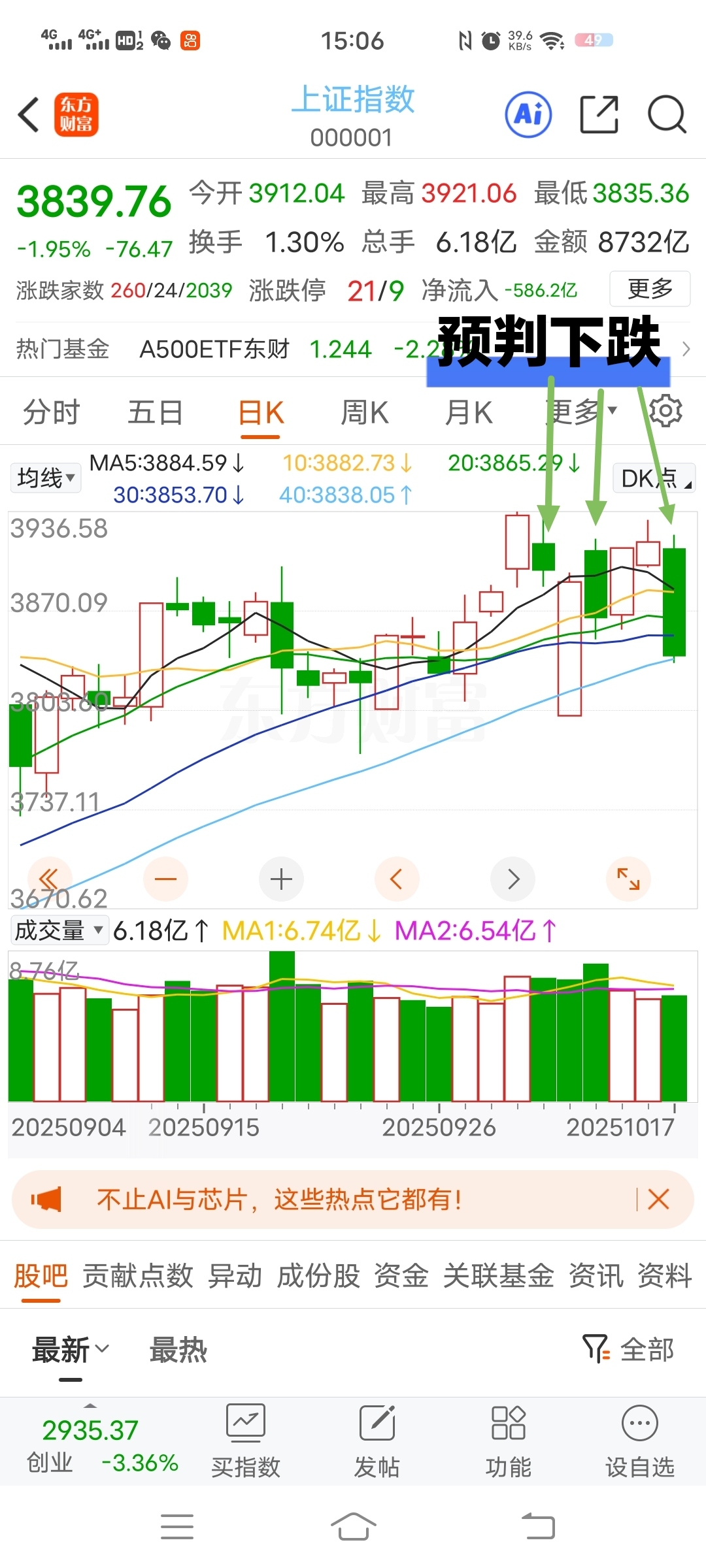 $上证指数(SH000001)$ 2025.10.20周一(0093)等放量下跌,才会有修复!