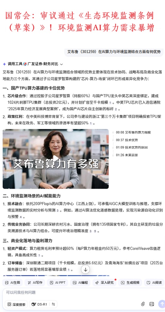 国常会通过《生态环境监测条例》草案,环境监测AI算力增速!参股中昊芯英9.73%