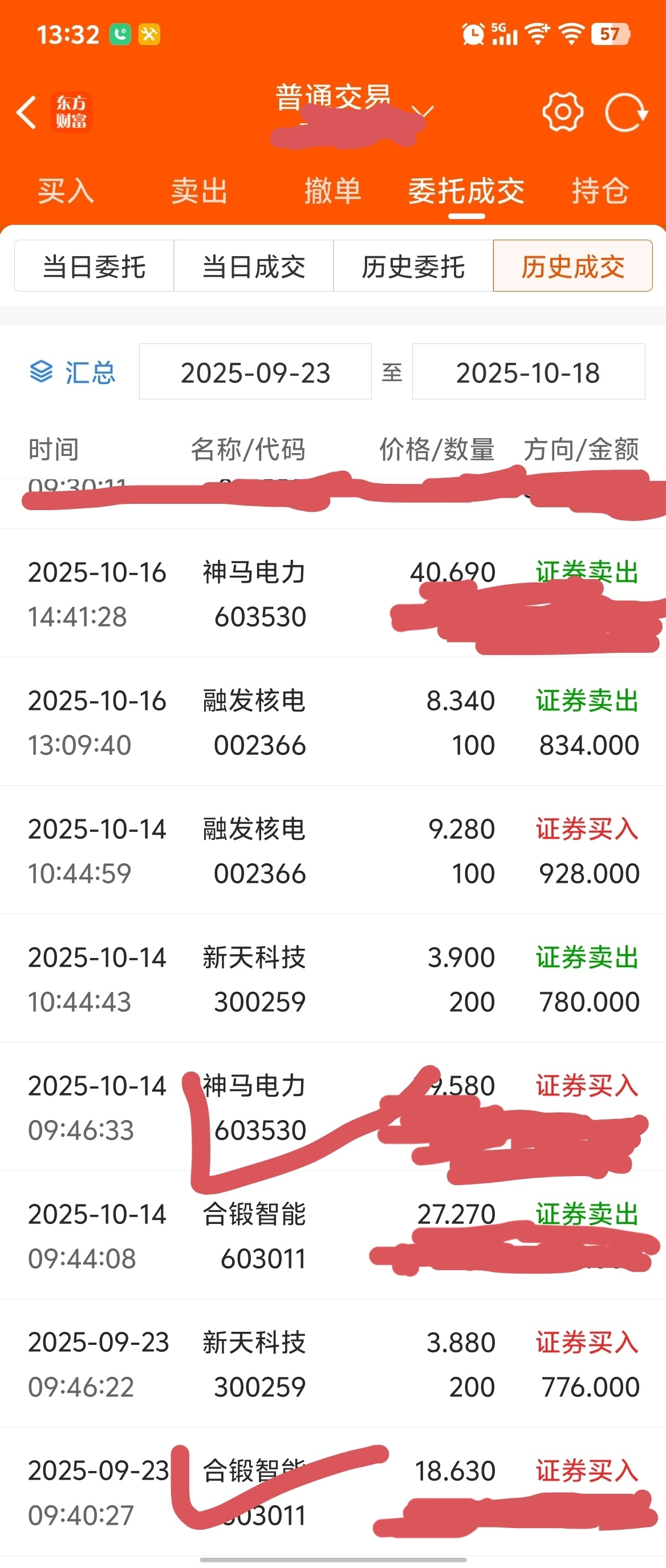 虽然我这些策略,回测绝大多数能够达到年化收益20倍到45倍,但实盘结果证明,很难达到回测那么高的收益,因为人性的贪婪与恐惧,无法完全避免,合锻智能,神马电力如果完全按策略,按我输入的条件单交易,可以有更高的收益,结果我看大盘不稳,都提前手动卖了,特别是神马电力,卖在地板上了。