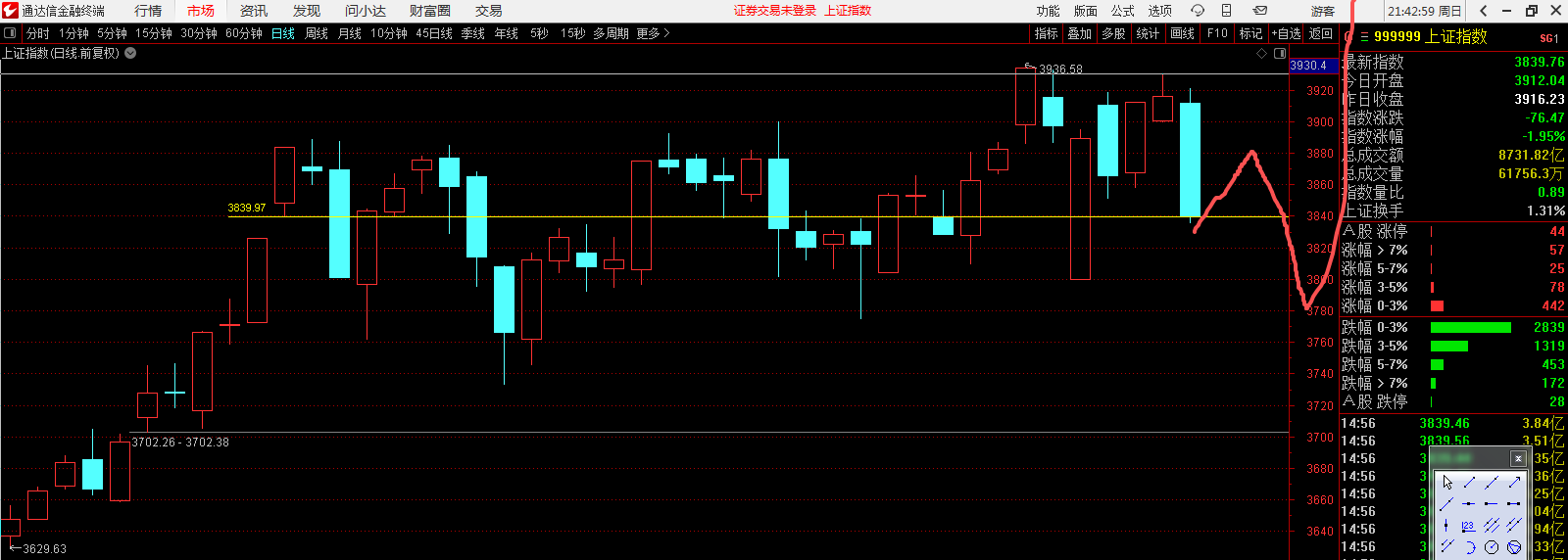 这里由于周五的抛压比较大,说明利空那天混进来的散户确实不少,那么这里短线就需要跌穿利空的K线把所有进来的人打成亏损,然后依然向上