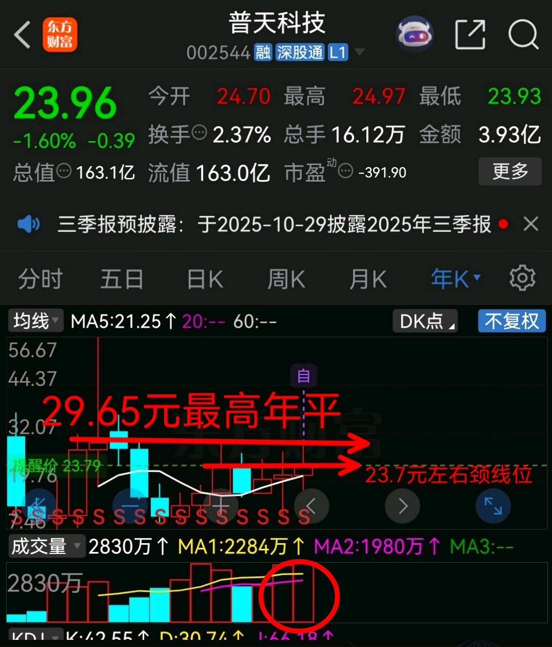 普天科技需要业绩改观才能继续冲击最高年平台29.65元左右和惯性以上…现在23.7元左右或惯性以下分批低吸试盘感……
