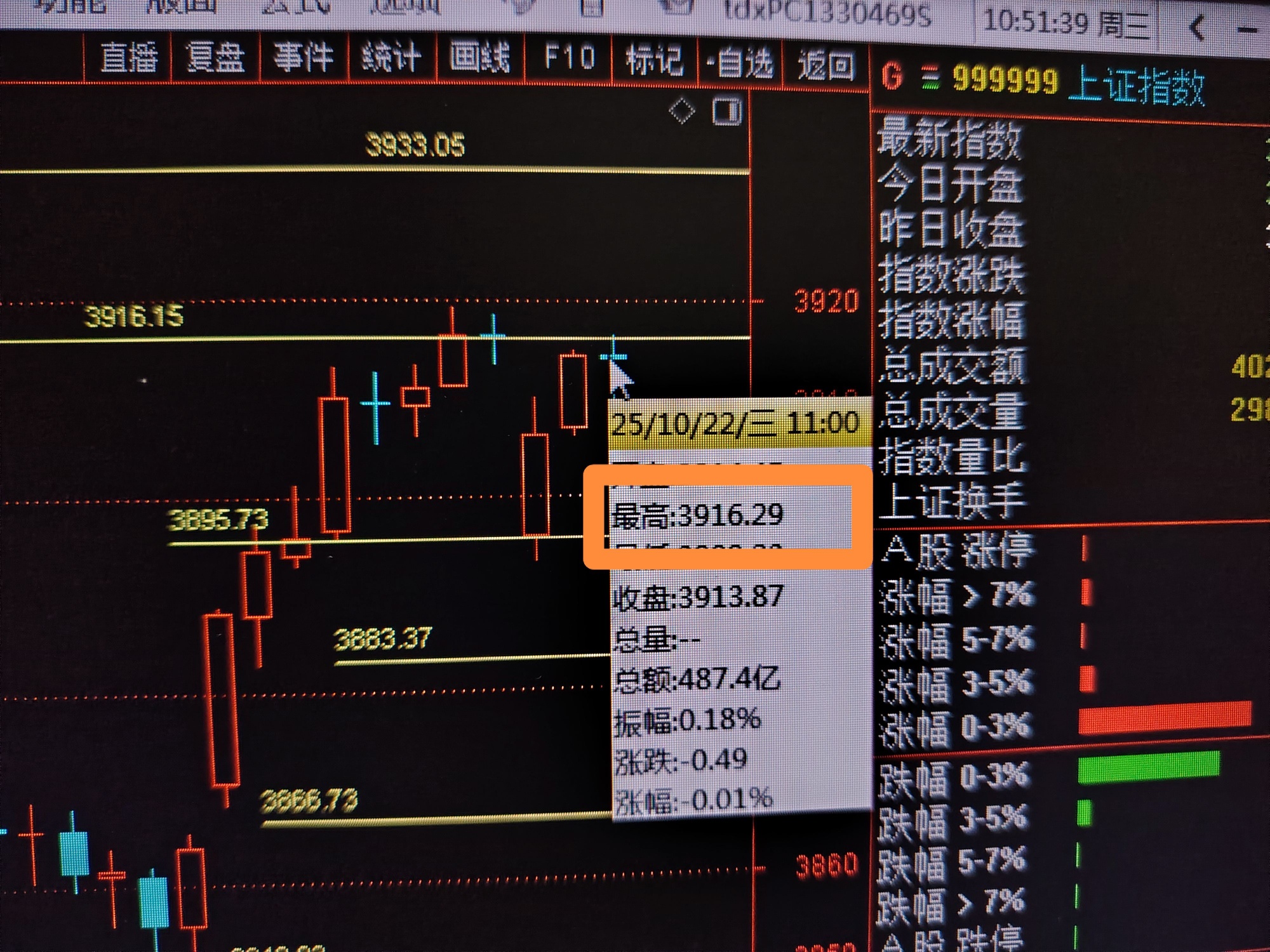 大盘刚才最高到达3916.29,比昨天的最高点3916.33相差了0.04个点而