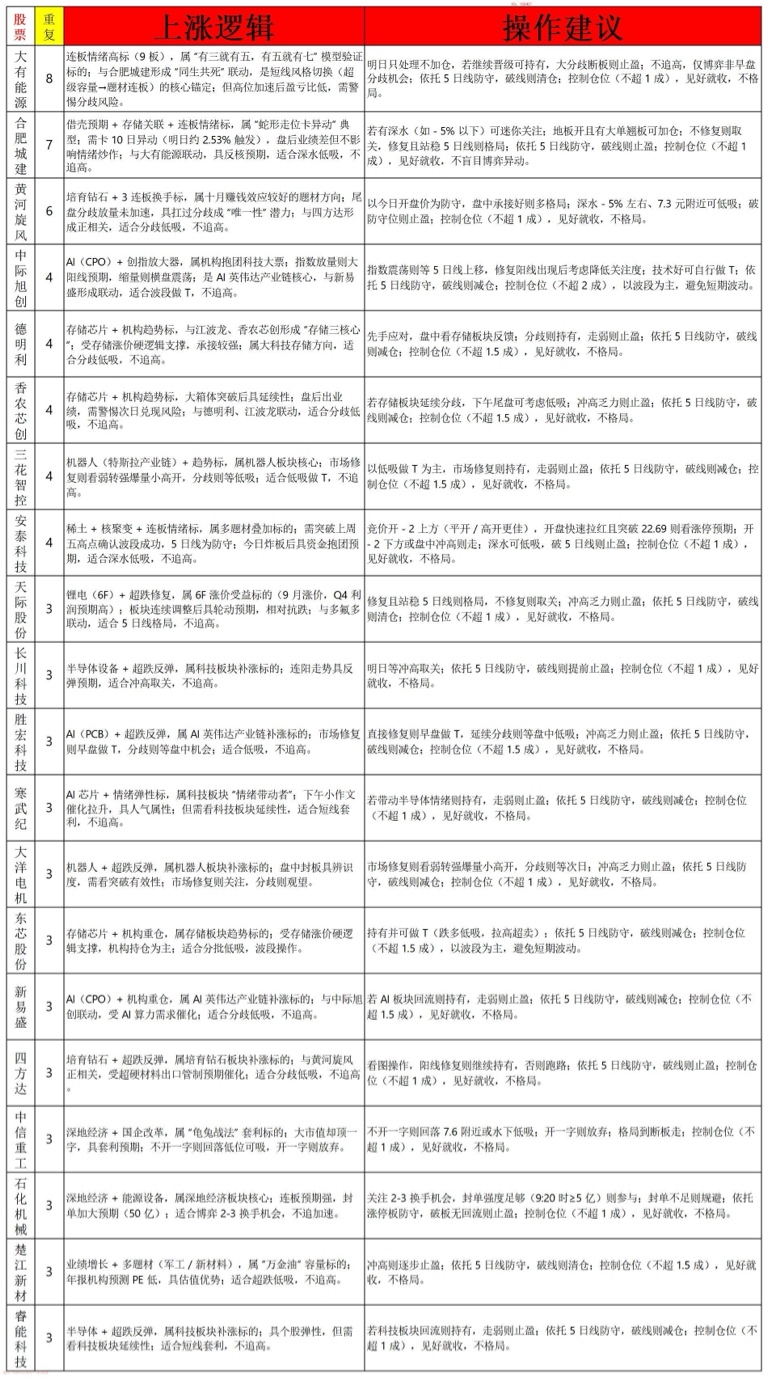 备注:若早盘被合肥城建 核按钮带动小幅低开,可深水低吸反核,盘中做T。