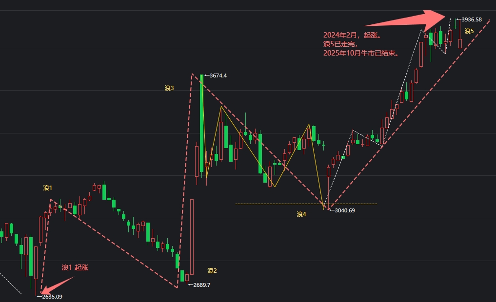 $上证指数(SH000001)$ 牛市已结束,现在是下跌浪1的子浪2。