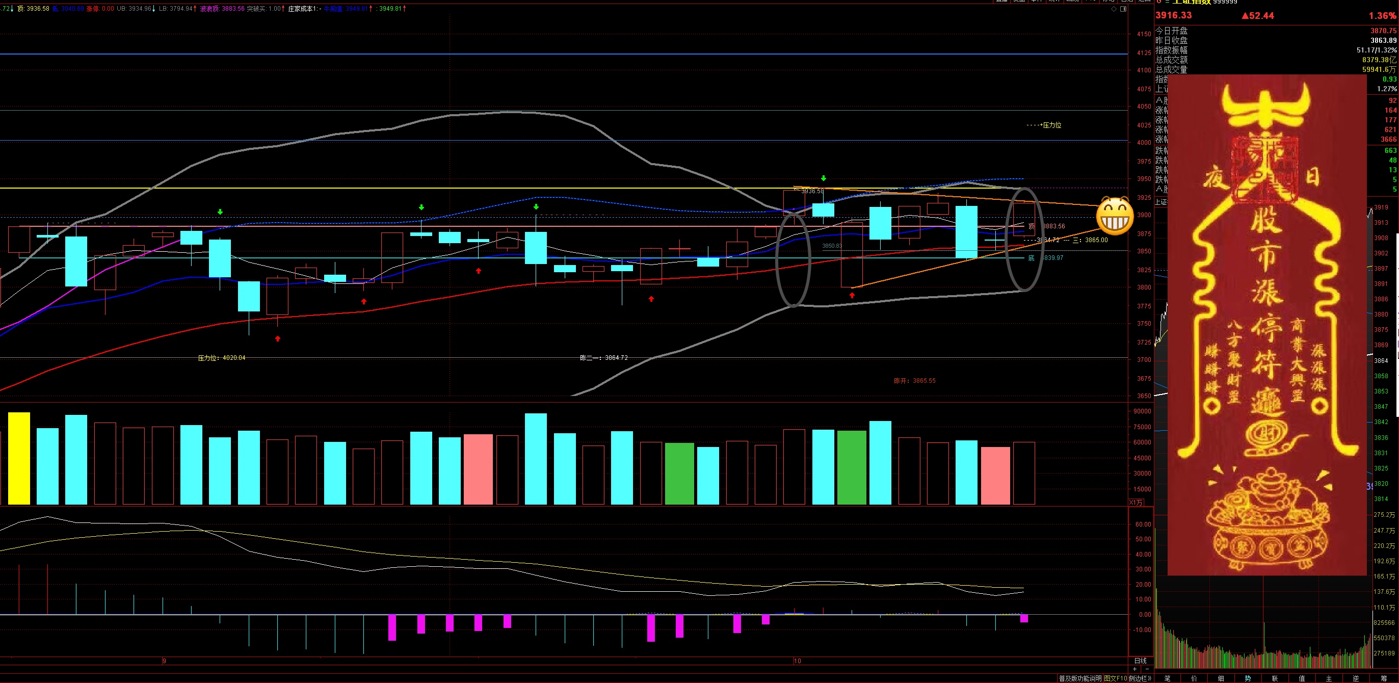 $上证指数(SH000001)$ 周三周四注意3936点能不能突破或者站稳,放量即可,缩量的话还是要注意高抛哦。