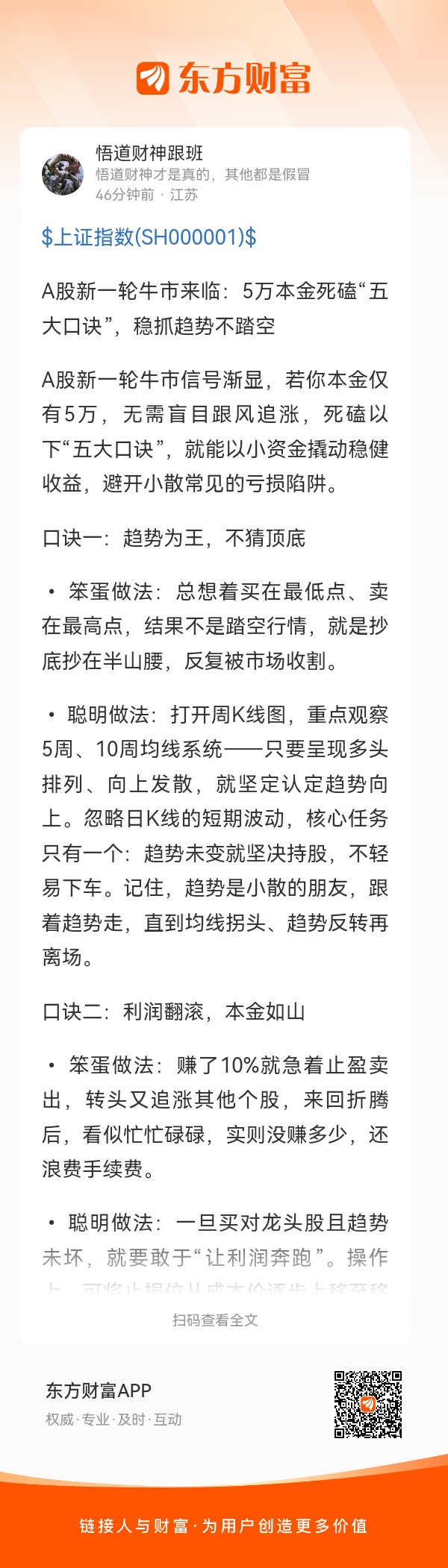A股新一轮牛市来临:5万本金死磕“五大口诀”,稳抓趋势不踏空