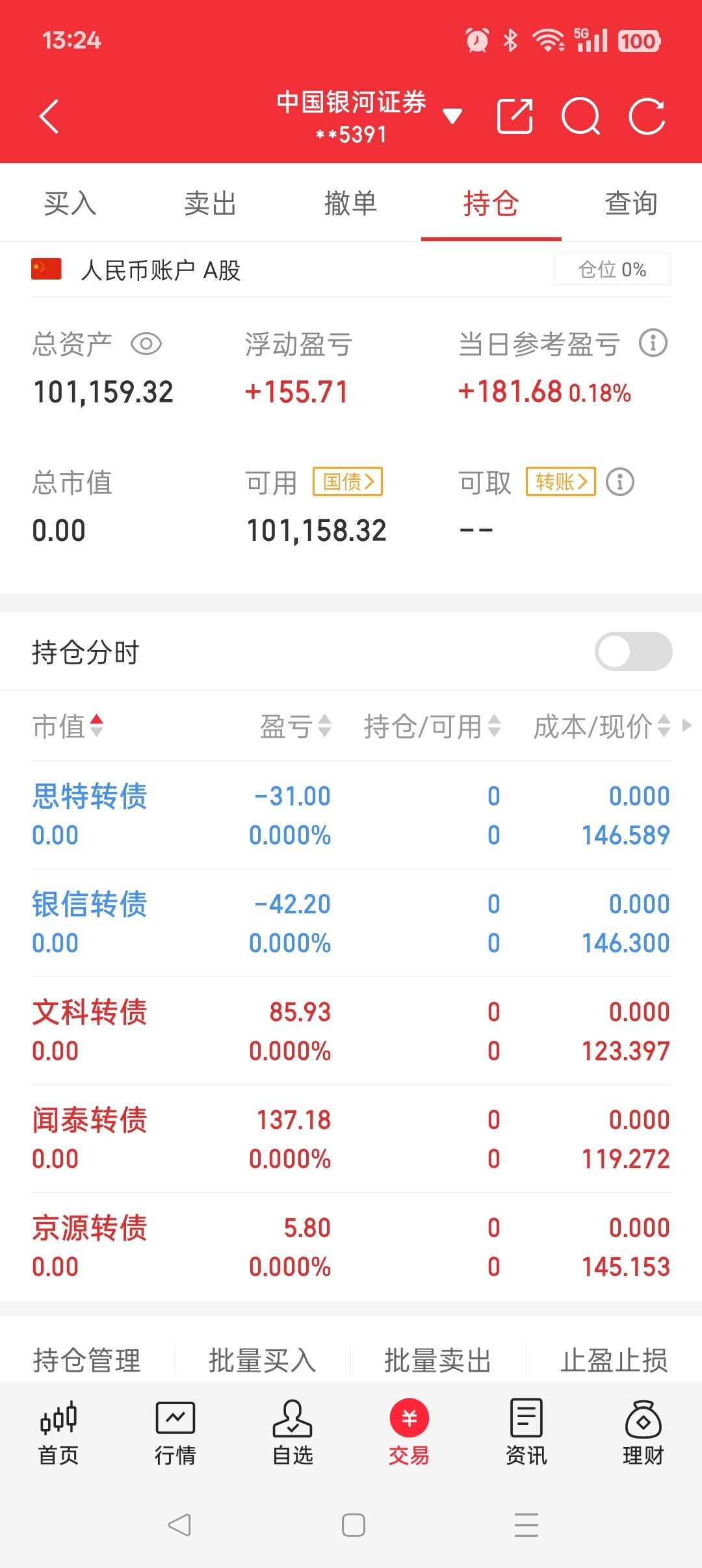 当天买当天卖,不赚钱,今天休息了,明天上班