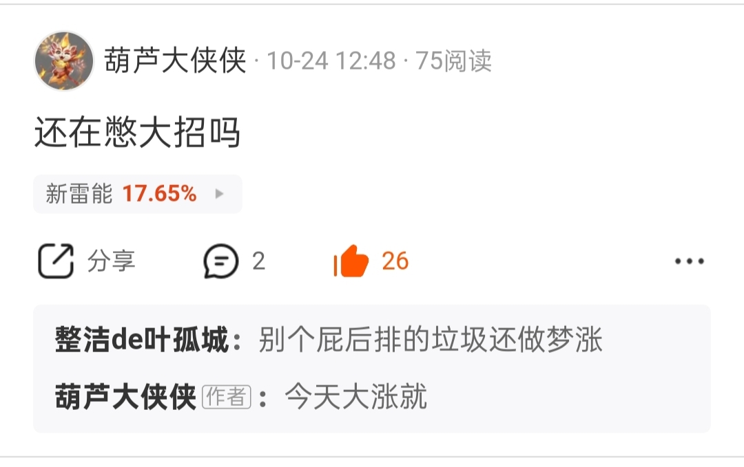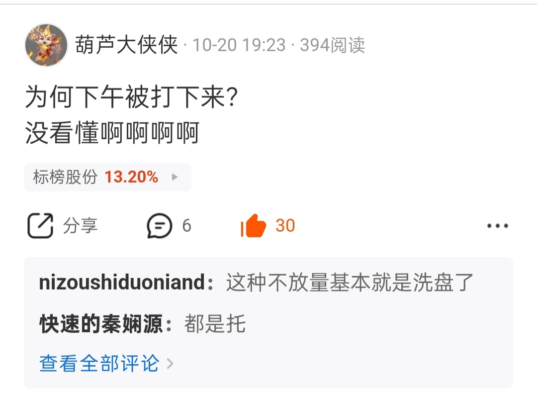 温馨提示: 1.根据《证券法》规定,禁止编造、传播虚假信息或者误导性信息,扰乱证券市场;2.用户在本社区发表的所有资料、言论等仅代表个人观点,与本网站立场无关,不对您构成任何投资建议。用户应基于自己的独立判断,自行决定证券投资并承担相应风险。《东方财富社区管理规定》
