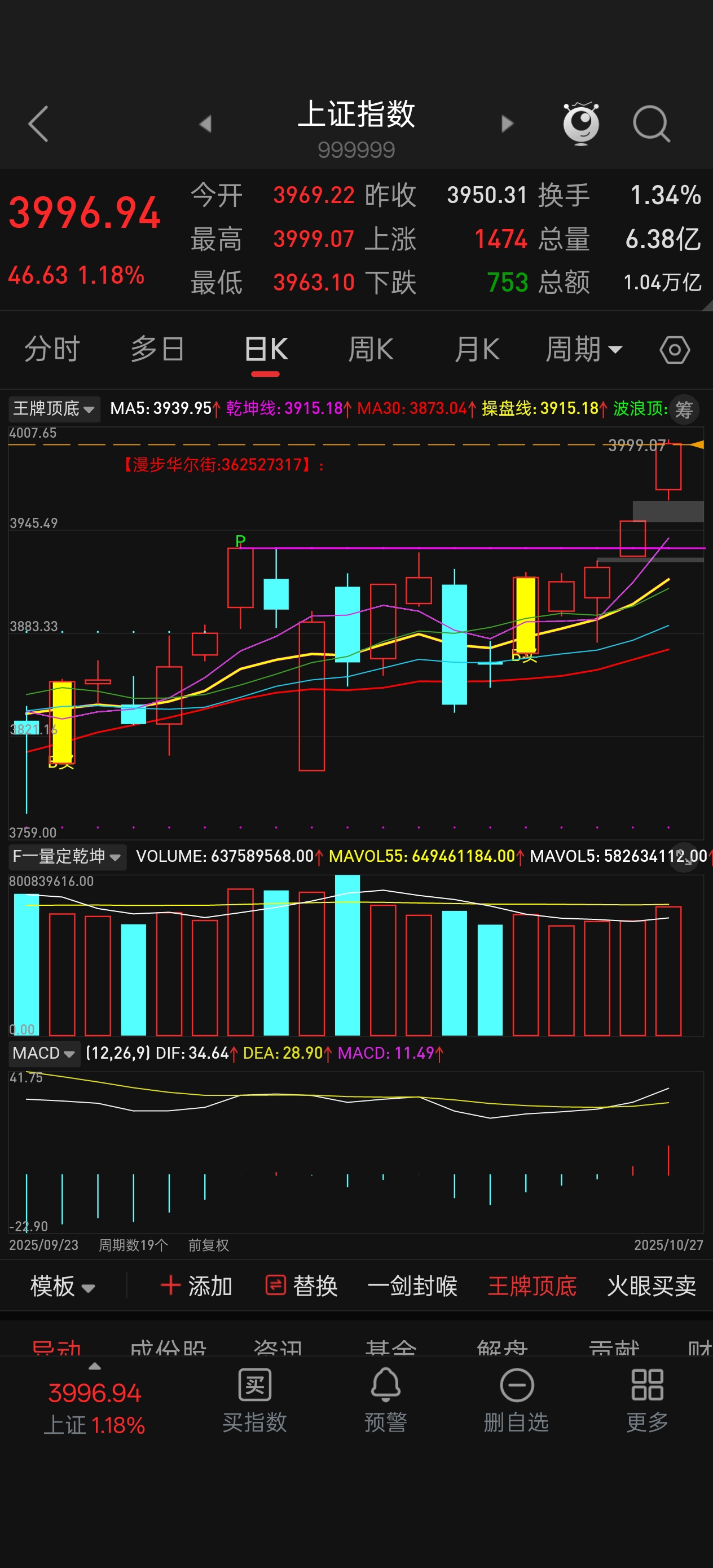 $上证指数(SH000001)$ 周二,准备冲过4000点啦,明天有获利的准备冲高高抛吧,明天冲高回落,个人允许收个一个小阳线,同意的赞赞