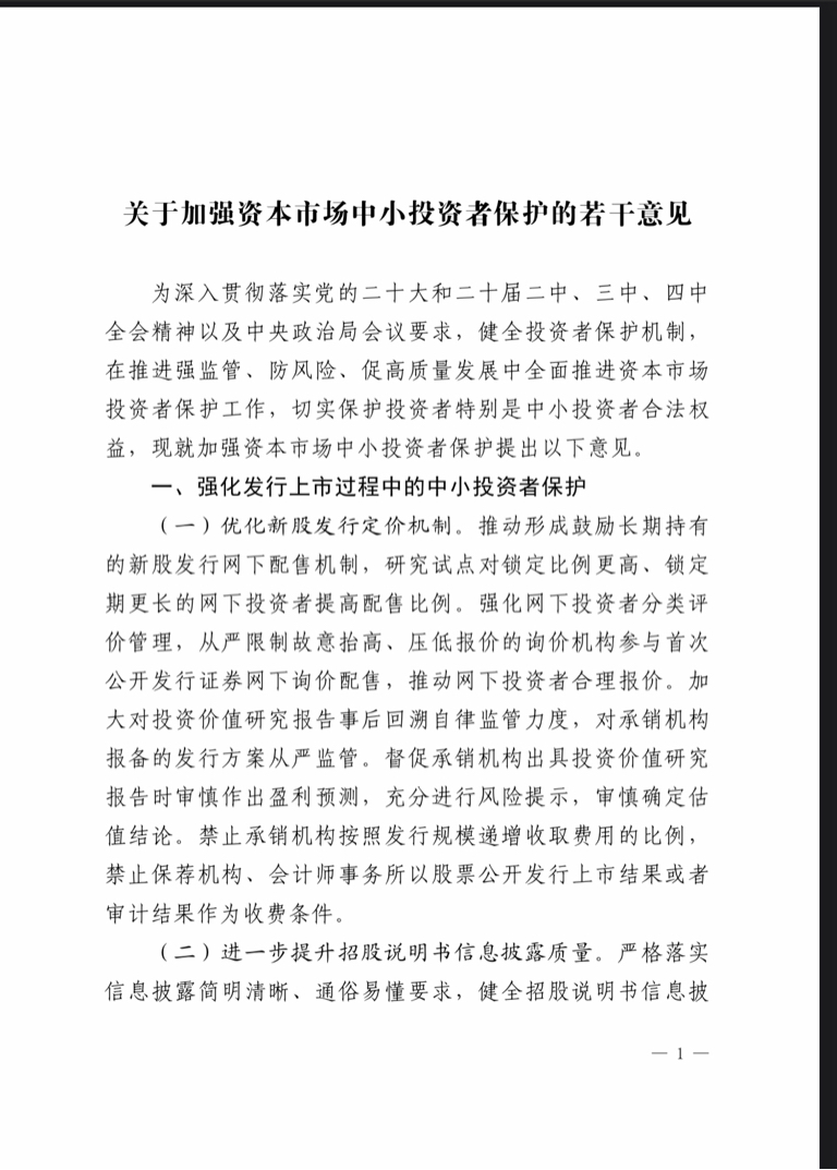$上证指数(SH000001)$ 关于加强资本市场中小投资者保护的若干意见,给你们看看原文,呵呵