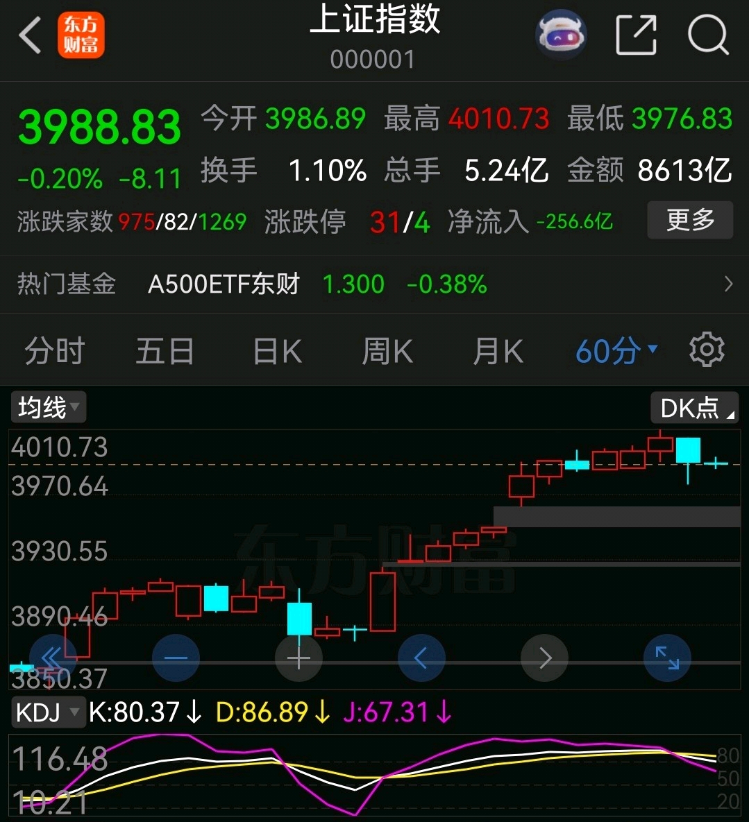 今天刷新4006点后回落,从60分钟图看,明天会盘中反抽再次冲击4005点左右高度,能否再次刷新高?如不能,明天逢4005点左右再次减仓操作,防本周五回撤回踩3910点左右,即把3950点左右本周一跳空缺口回补……符合大A特性逢缺口回补……