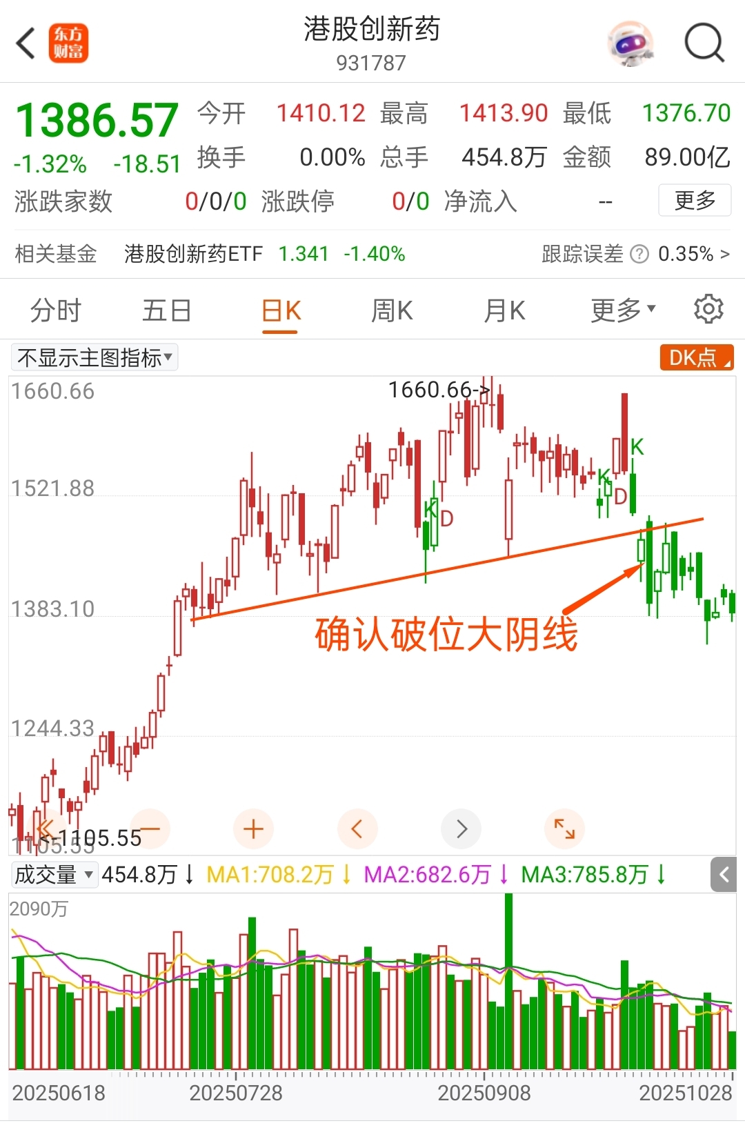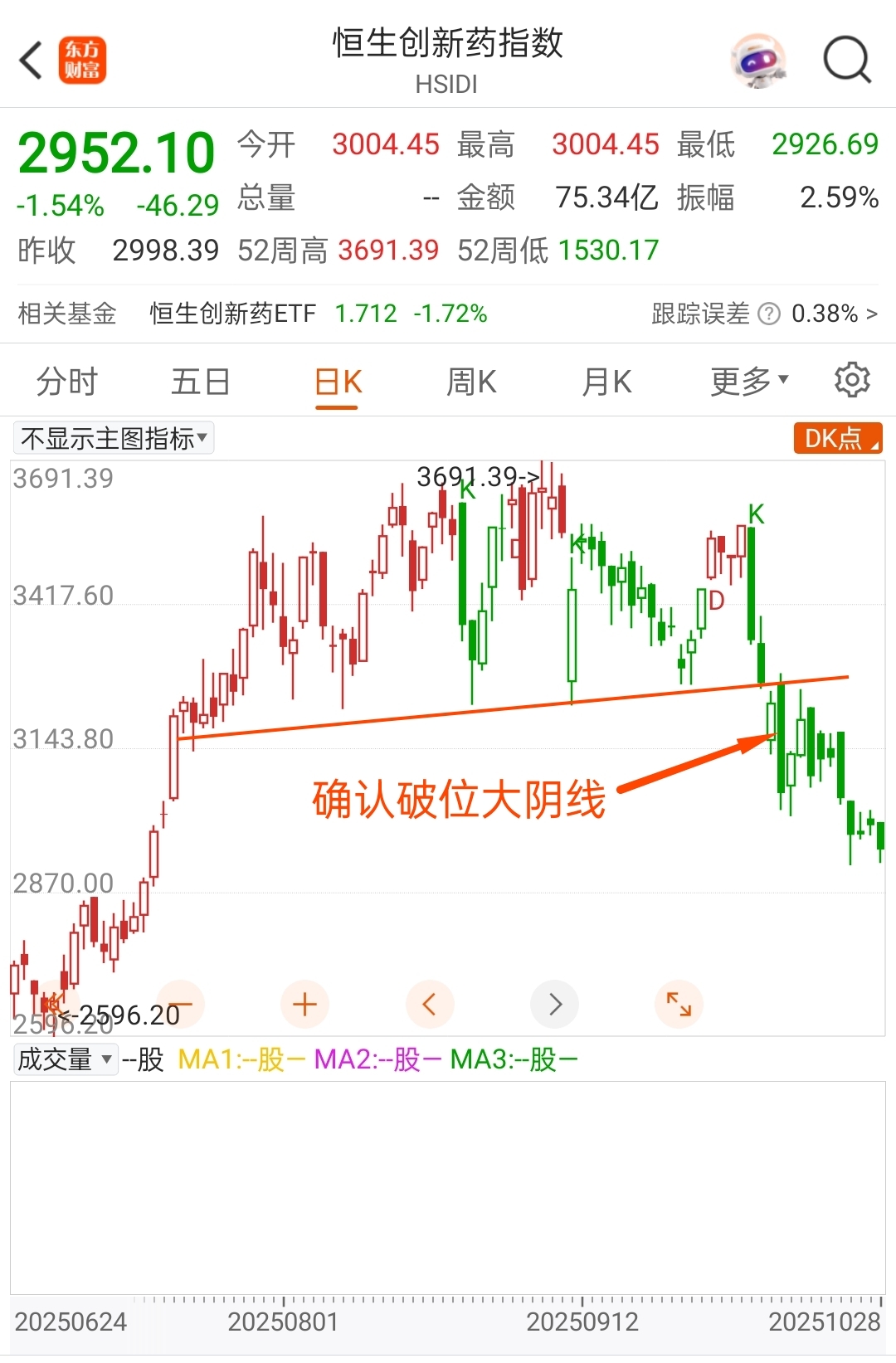 $上证指数(SH000001)$ $恒生创新药指数(HS|HSIDI)$ $港股创新药(IS931787)$ 为什么这么久了,我一直没提港股创新药了,因为港股创新药医药医疗生物科技,大趋势均已破位,成熟的投资者是布会去玩大趋势巳经破位的走势。
