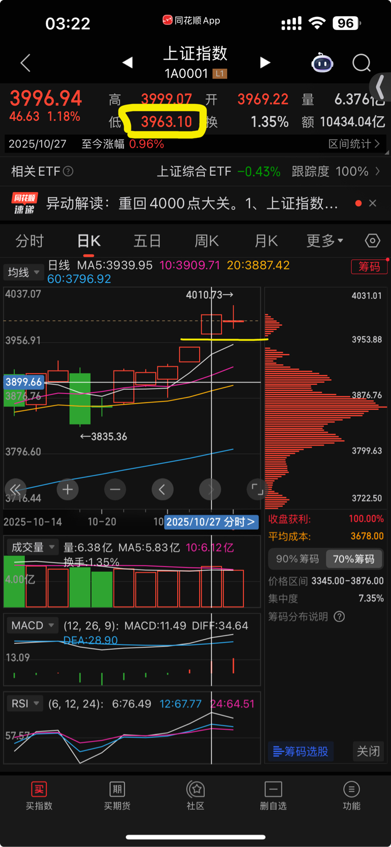 最近各位体感如何?赚钱效应应该也不太好吧。看趋势,目前定义为上升中的洗盘。黄线就是强弱分水岭,按收盘点位算。继续亏钱的一天