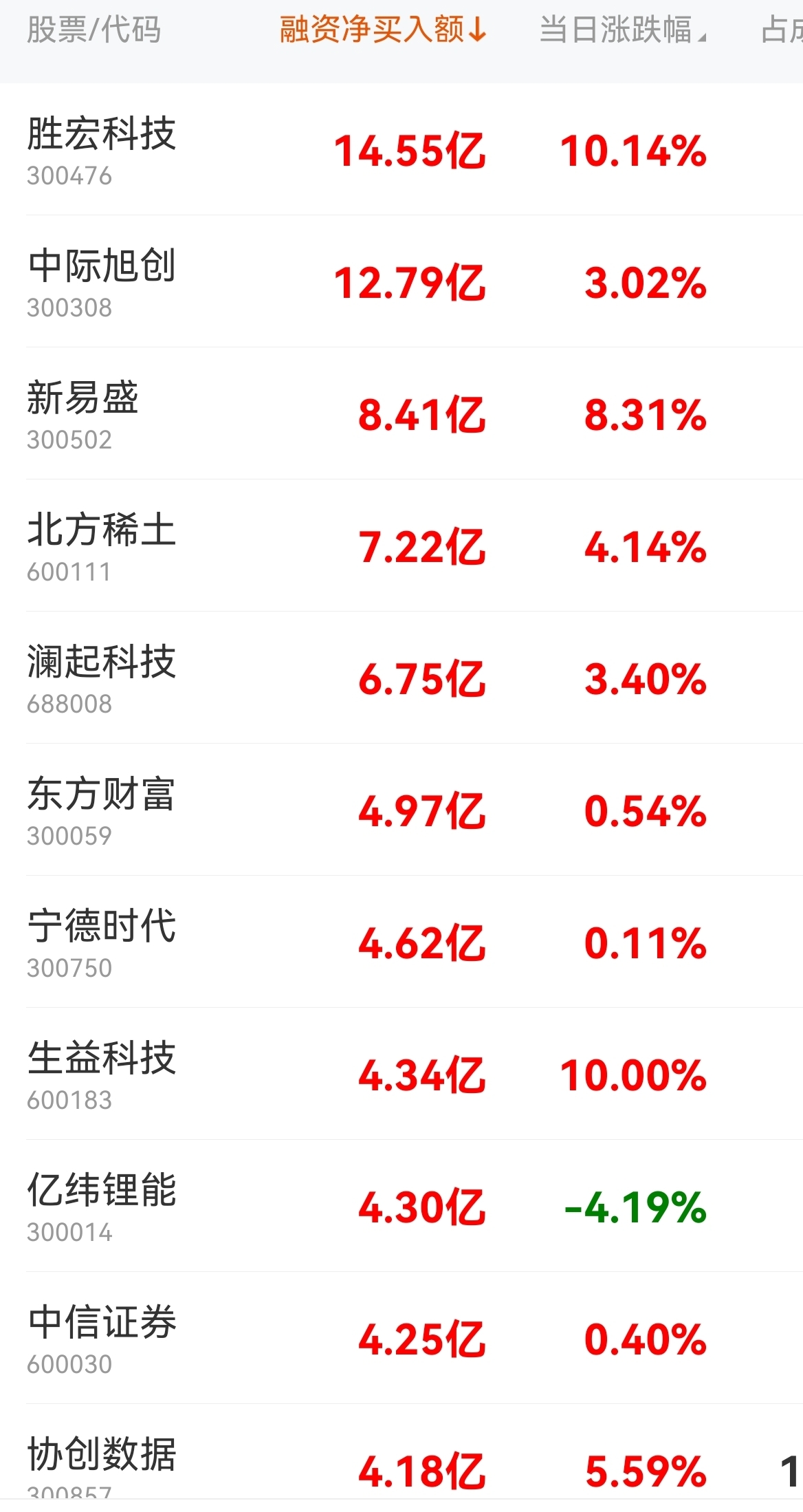 第一名:胜宏科技,融资净买入14.55亿,创业板PCB龙头