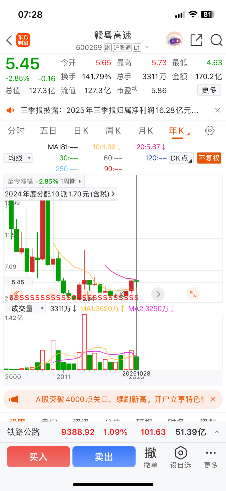 业绩增长分红超银行利息,今年以来跌两点多,有没有道理?