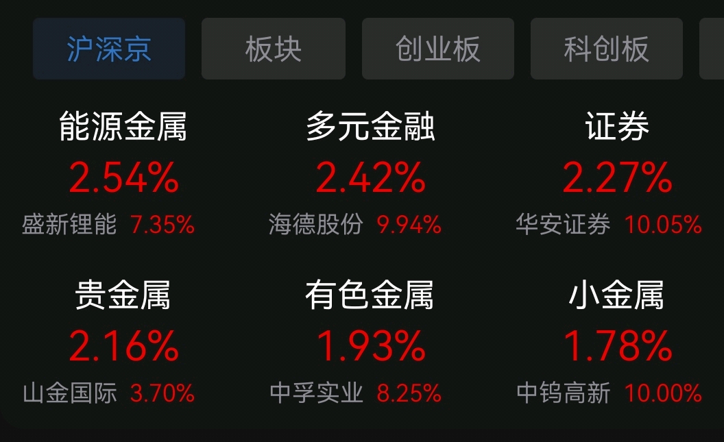今天带金板块的世界,带金的都大涨。证券含着金元素在飞。