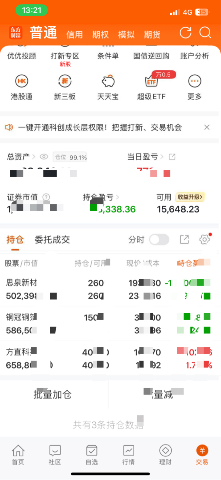 第80天实盘记录|50W投资历程分享今天继续持有$方直科技(SZ300235)$  已经稳定收益,还能上涨。$思泉新材(SZ301489)$  也继续持有如大家所见 亏损不少 新入$铜冠铜箔(SZ301217)$  祝大家一路长虹