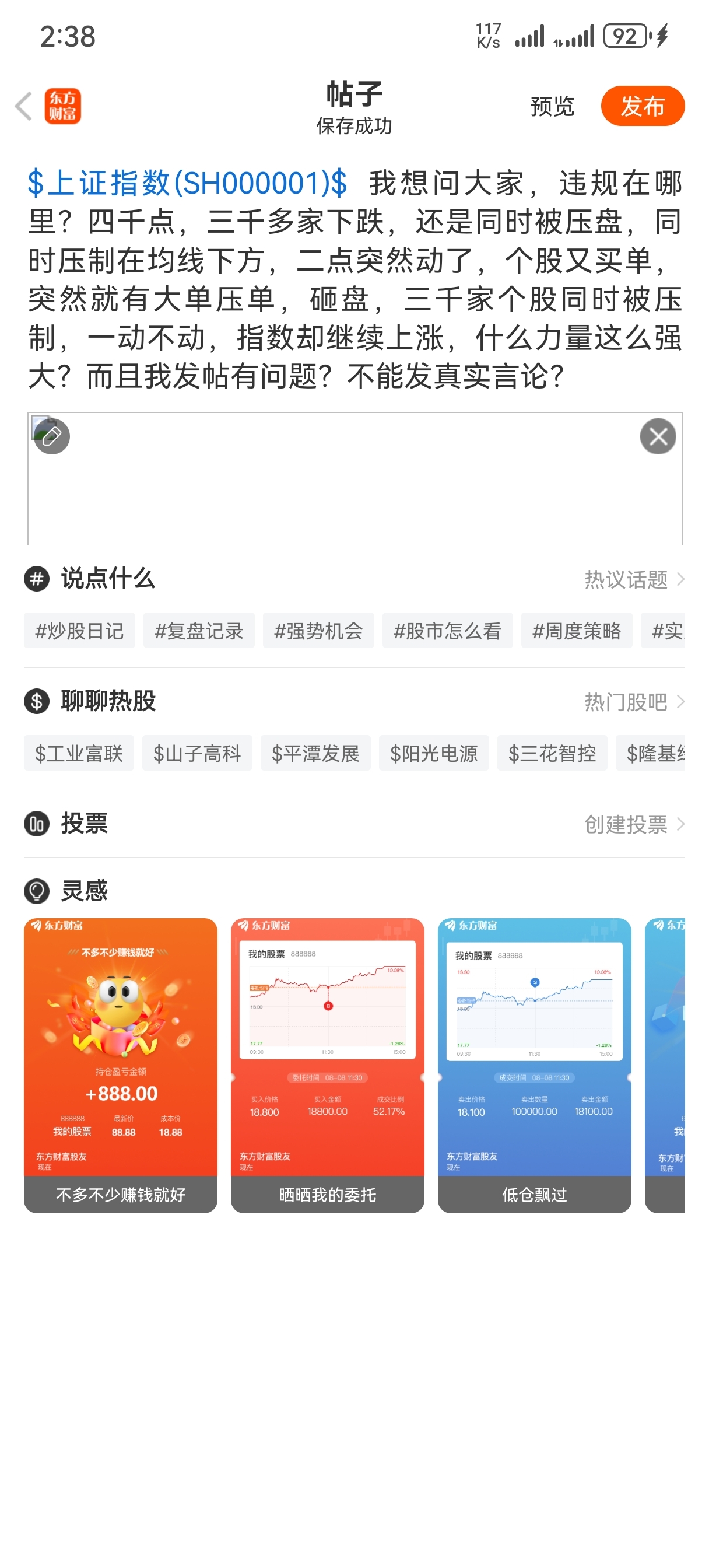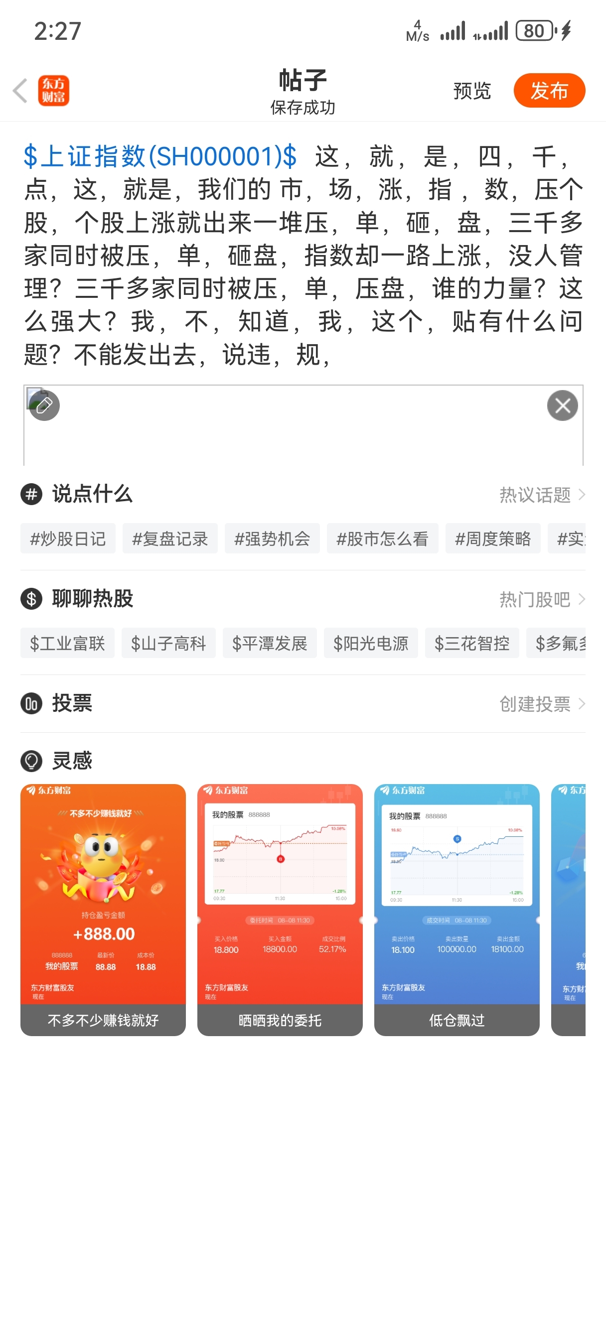 温馨提示: 1.根据《证券法》规定,禁止编造、传播虚假信息或者误导性信息,扰乱证券市场;2.用户在本社区发表的所有资料、言论等仅代表个人观点,与本网站立场无关,不对您构成任何投资建议。用户应基于自己的独立判断,自行决定证券投资并承担相应风险。《东方财富社区管理规定》