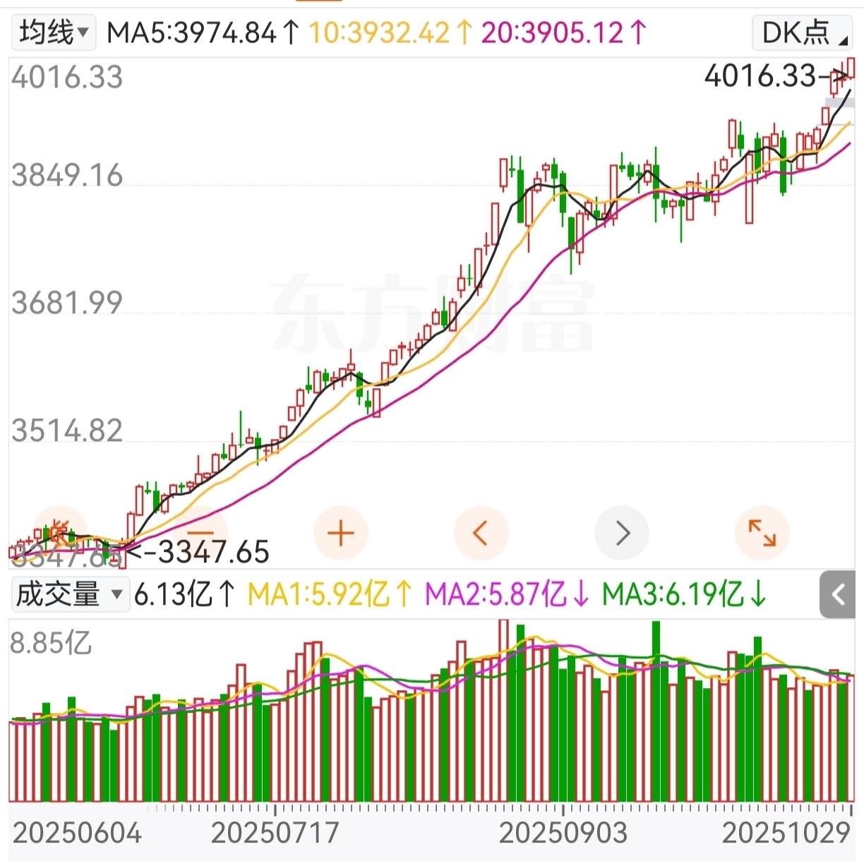 发盘走出调整期了,继续上涨趋势,很多调整的科技股也走出来了,这么看着都有点恐高。
