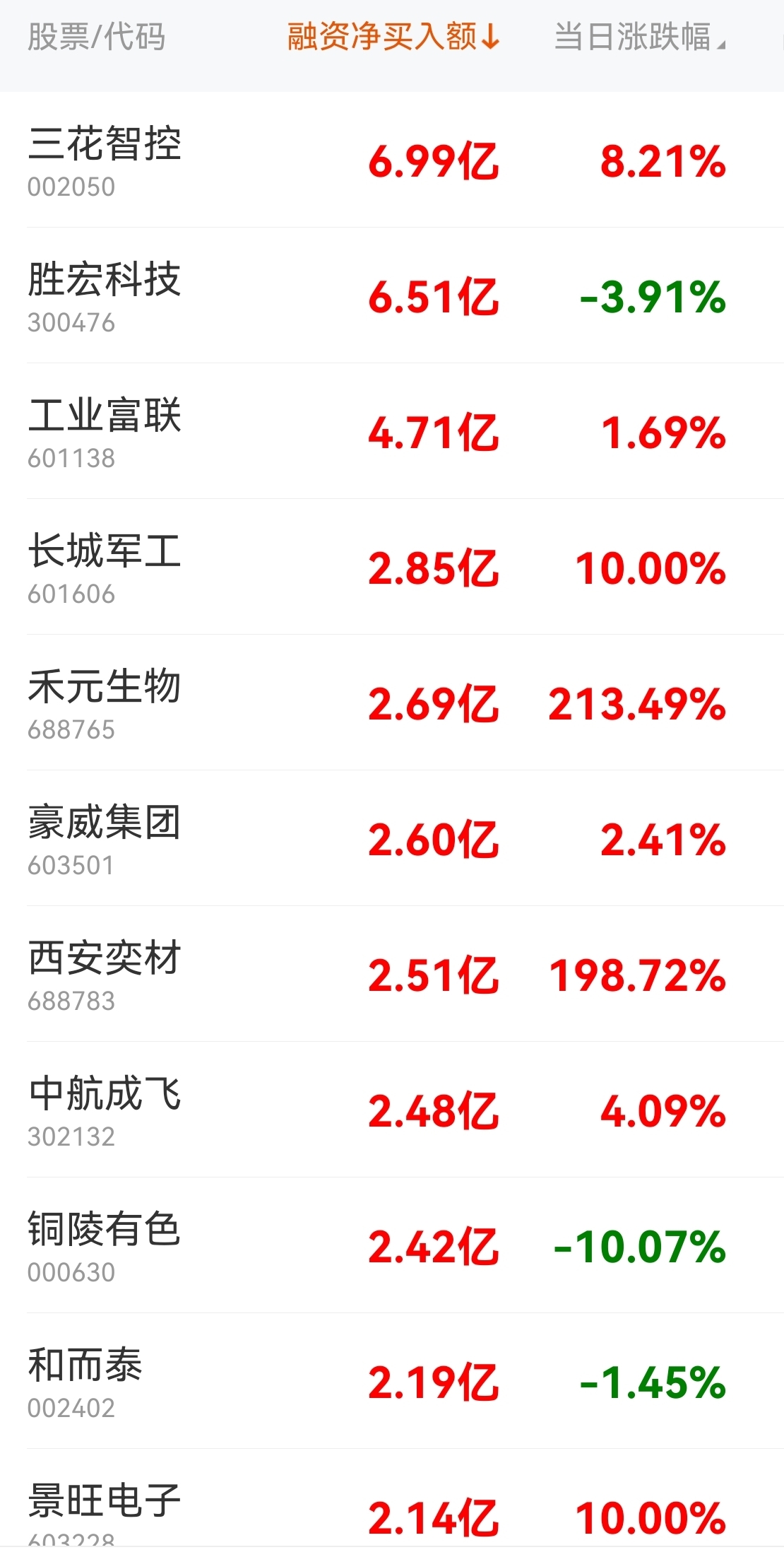 第一名:三花智控,融资净买入6.99亿,机器人龙头