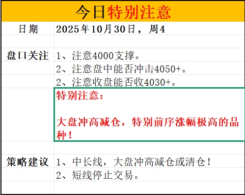 《妙妙早盘预判-25.10.30,周四》