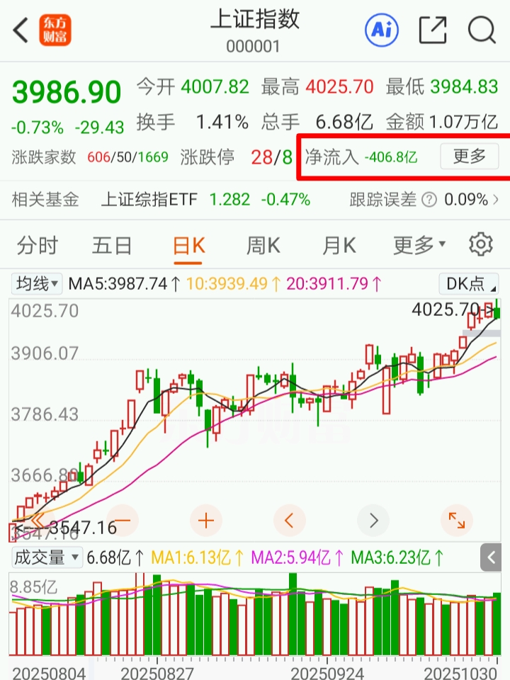 $上证指数(SH000001)$ A股上证指数今天新高后在下午回落今天如果是在震荡市行情上证指数今天就是反弹之后的见顶形态。流出400多亿,好在目前不是熊市和震荡市,要不能上证指数后市就危险了。下午本就偏弱的工业品整体下跌,美豆激烈震荡两粕表现抗跌,豆粕2601合约接近3000大关。