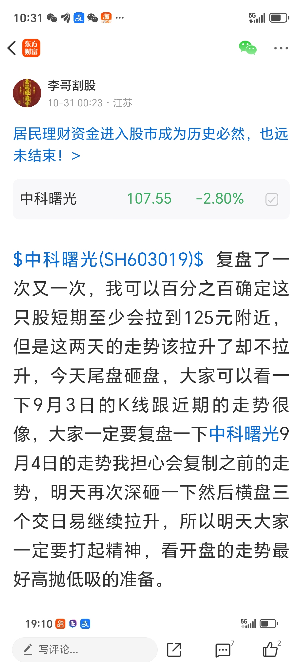 $上证指数(SH000001)$ $中科曙光$中科曙光,怪我,我认,但是短期125这个价格一定到,既然相信我就相信到底,会做T的高抛低吸,不会做T的拿着锁仓下周125出
