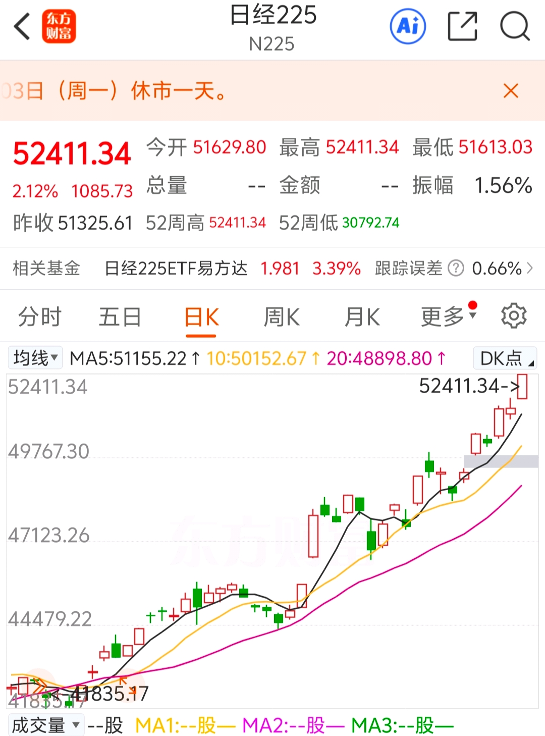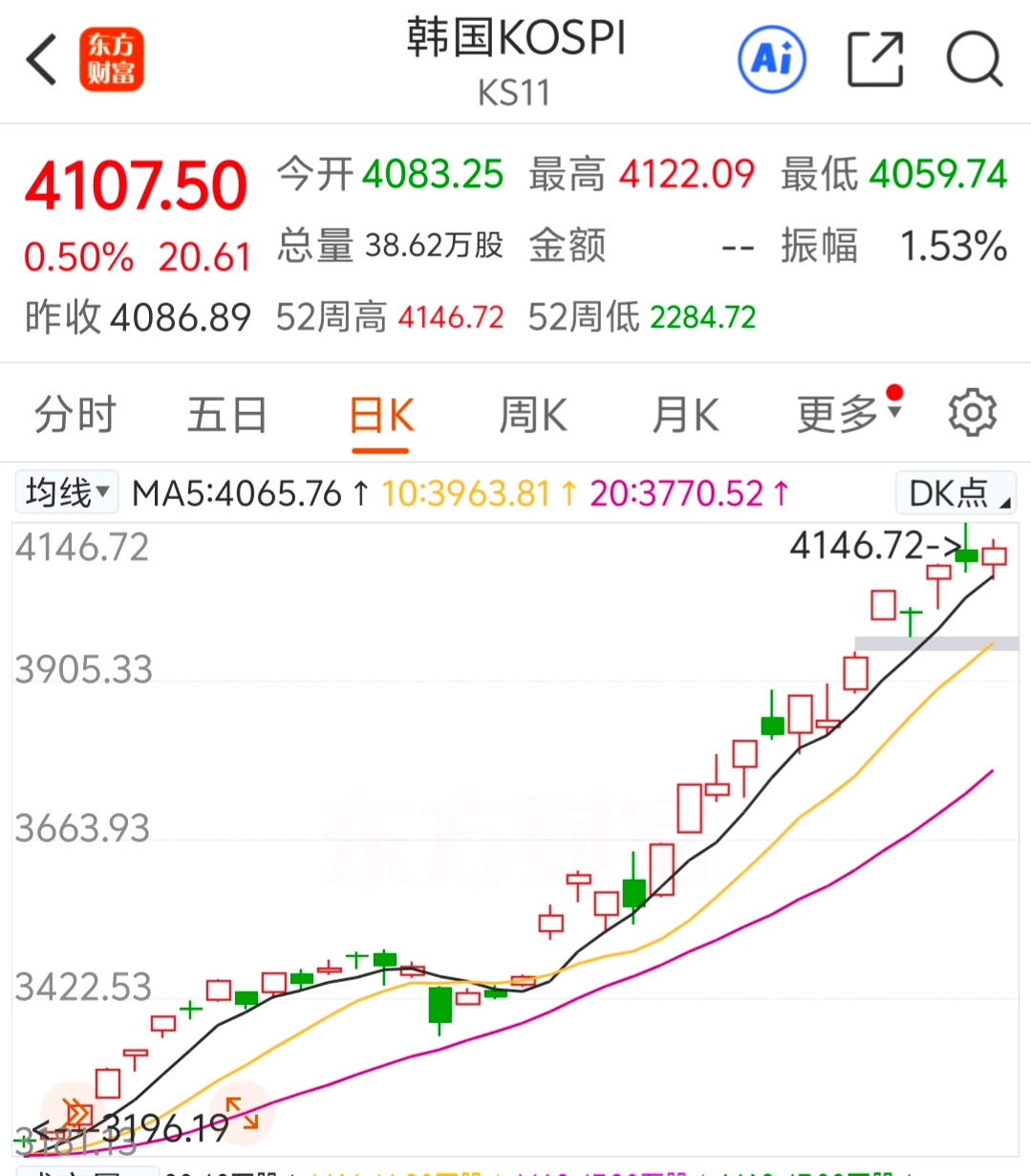 日本从42000点到5200只用了两个月,韩国从3100到4100只用了两个月!
