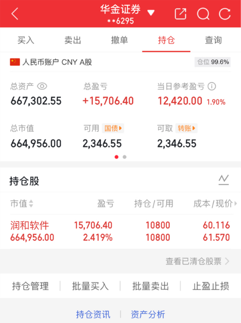 持仓股:持润和软件