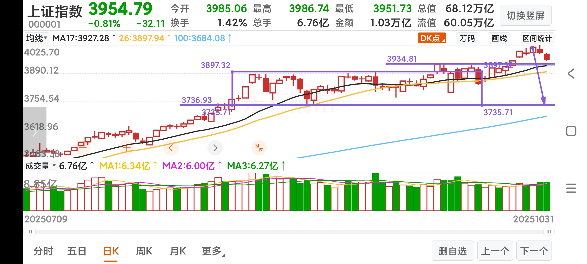 $上证指数(SH000001)$ 守不住就又回到原来的大震荡区间了!给你两天时间观察!跳空缺口和3950的支撑力度