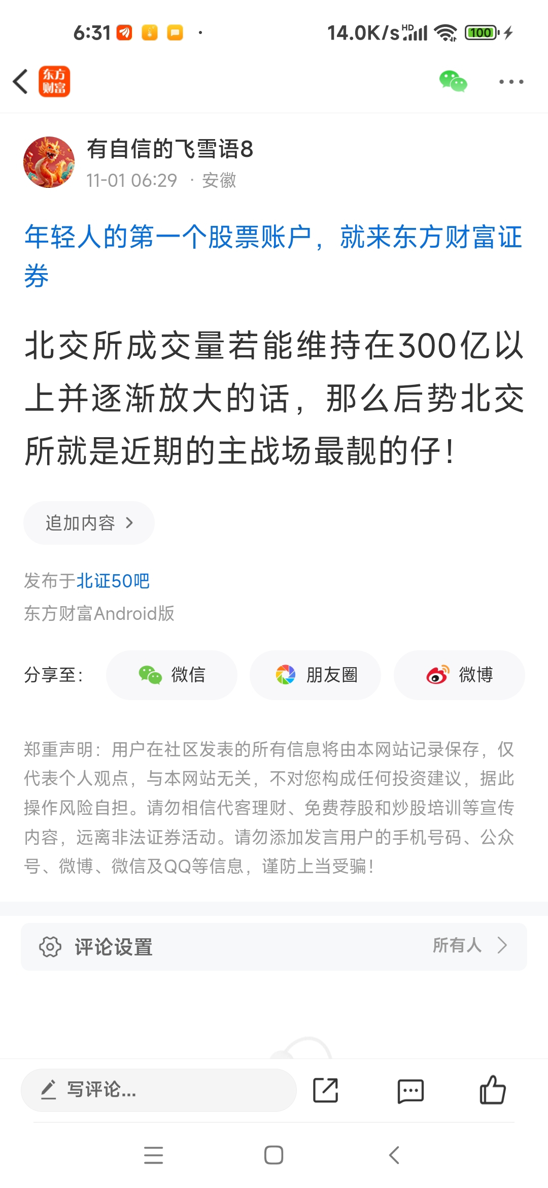 温馨提示: 1.根据《证券法》规定,禁止编造、传播虚假信息或者误导性信息,扰乱证券市场;2.用户在本社区发表的所有资料、言论等仅代表个人观点,与本网站立场无关,不对您构成任何投资建议。用户应基于自己的独立判断,自行决定证券投资并承担相应风险。《东方财富社区管理规定》