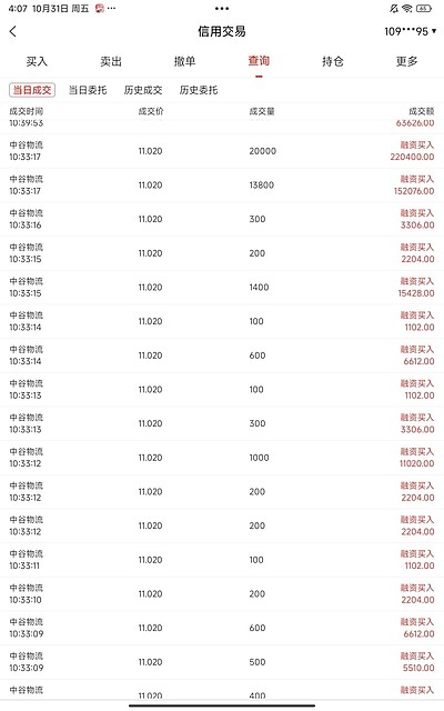 十月份运气不错加仓买进中谷物流阳光电源也许还要调整