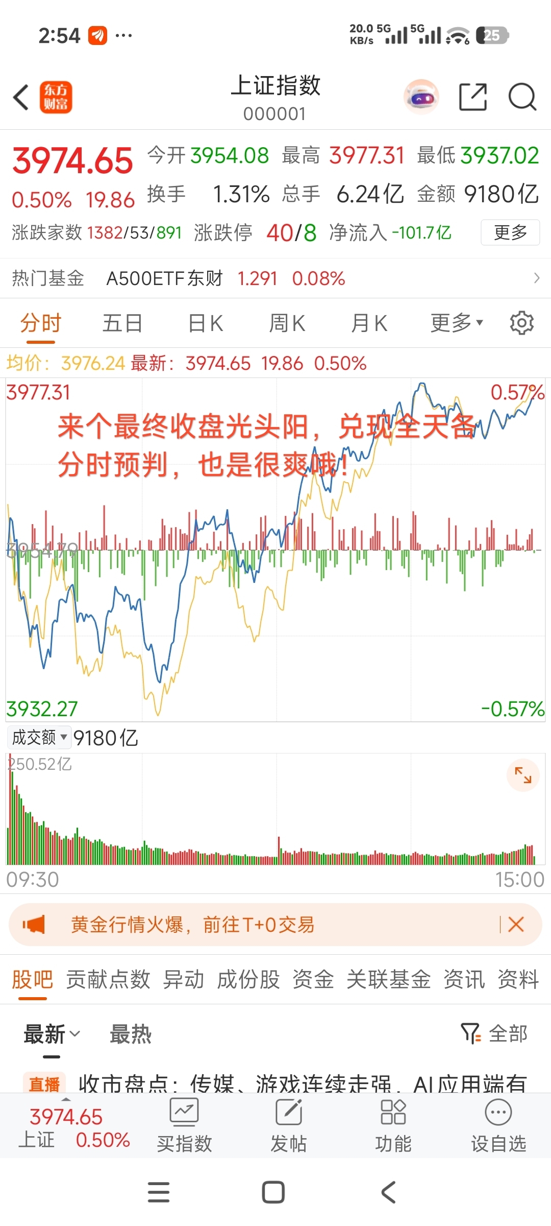 $上证指数(SH000001)$ $三六零(SH601360)$ $东方财富(SZ300059)$ 来个最终收盘光头阳,兑现全天各分时预判,也是很爽哦!