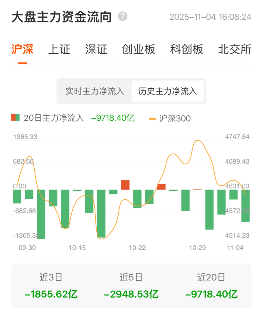 $上证指数(SH000001)$ 看这主力净流出,20日将近1万亿,真吓人!这么玩牛其实已经悄悄的熊了,只是散户不自知!