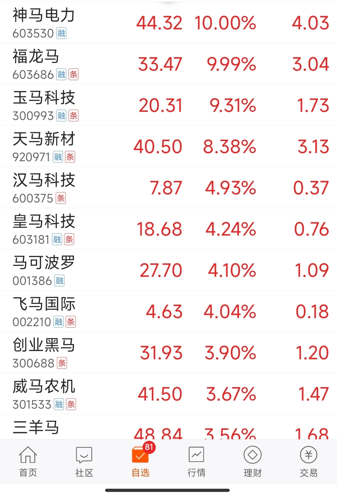 马年骑马,八月份开始埋伏开超市,股票见下图,目前马字辈8成仓位,空仓2成做T,目前清仓了云中马,后期根据情绪发酵逐渐减仓,感兴趣的可以关注的实盘组合,名称为小散也量化#“马”字辈股大涨!“玄学炒股”再现A股?#