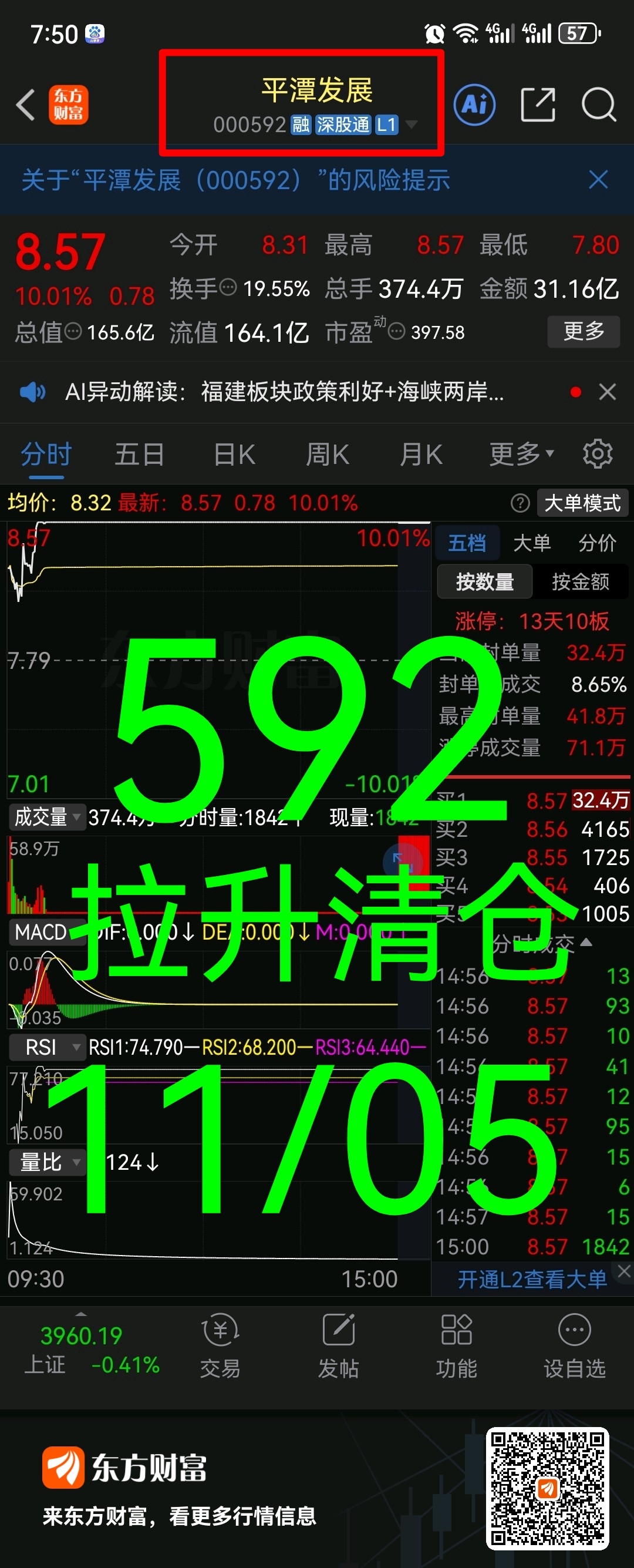 两市高标 000592 平潭发展 [红包][发]