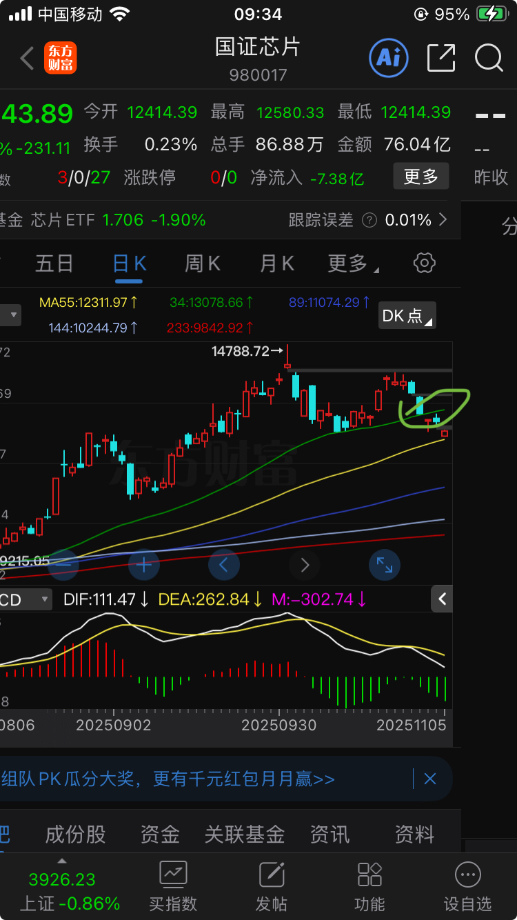 $上证指数(SH000001)$ 日线级别图上指数趋向下方均线系统上沿,远离国际市场公认“无法实现盈利”的AI芯片股——它前天跌破日线级别均线系统上沿后,昨天反抽不过,今天恢复下跌