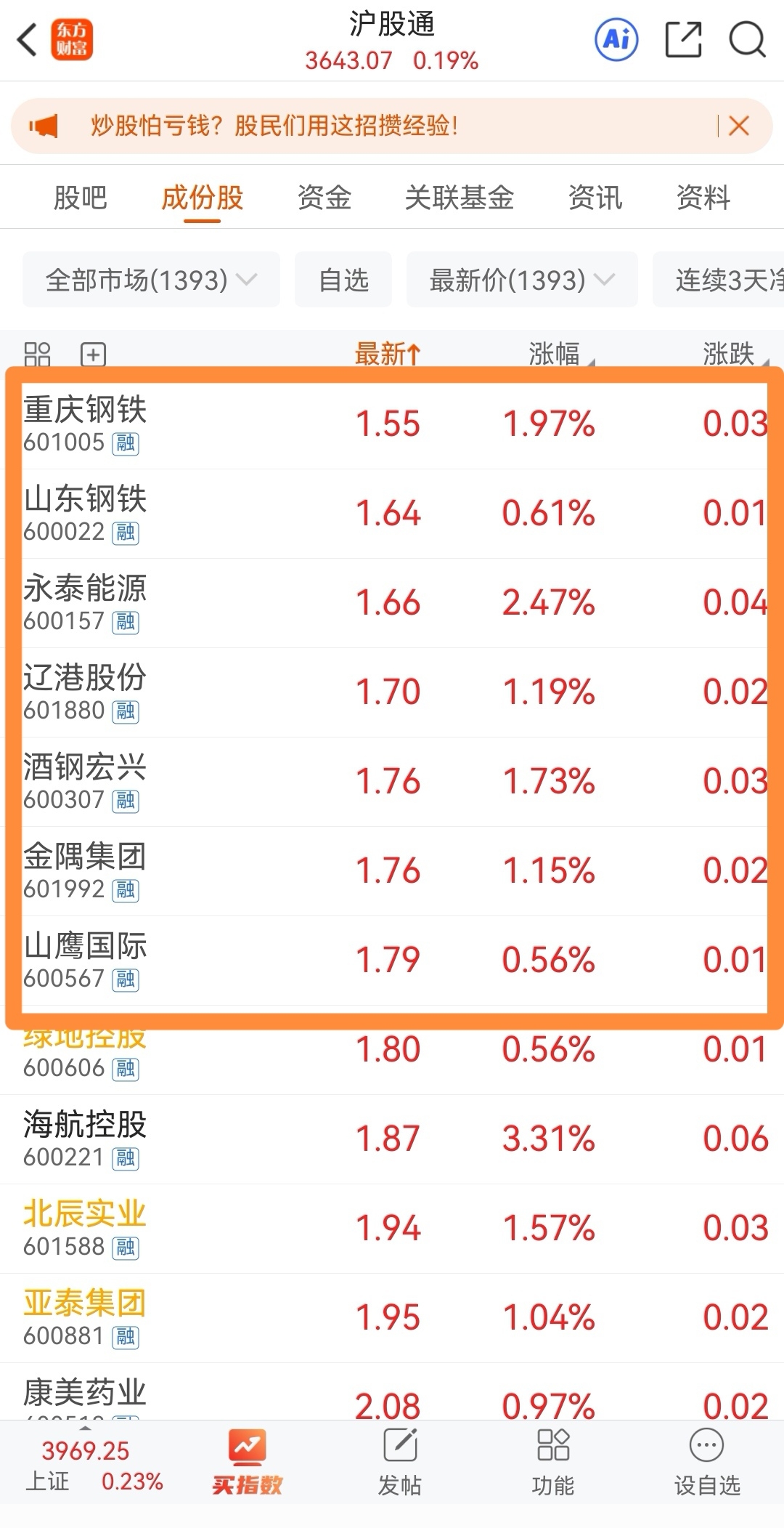 $上证指数(SH000001)$ 1.8以下最后8只票。。。