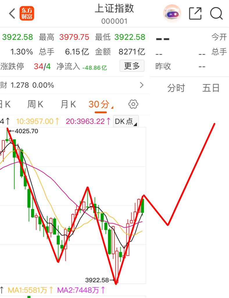 $上证指数(SH000001)$ 30分钟头肩底形态特征