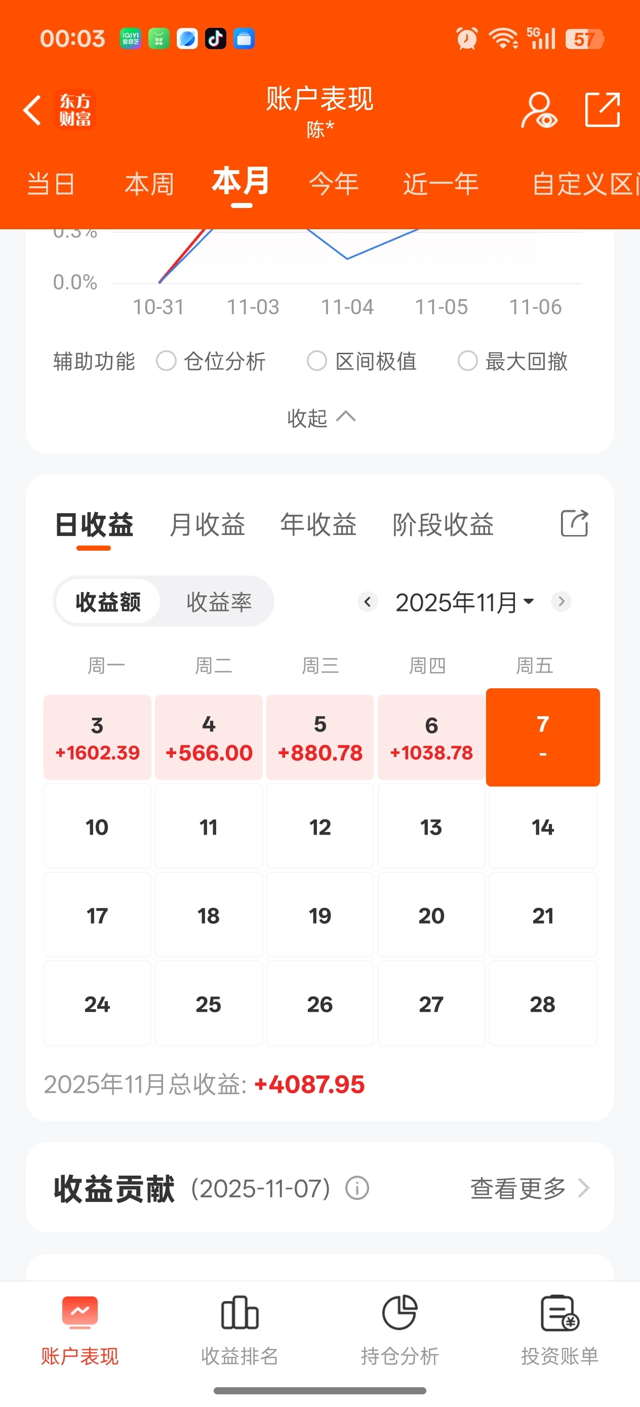 上个月损失不少盈利,这个月看看能回多少。刚开始是投资,后来是投机,再后来是赌博,