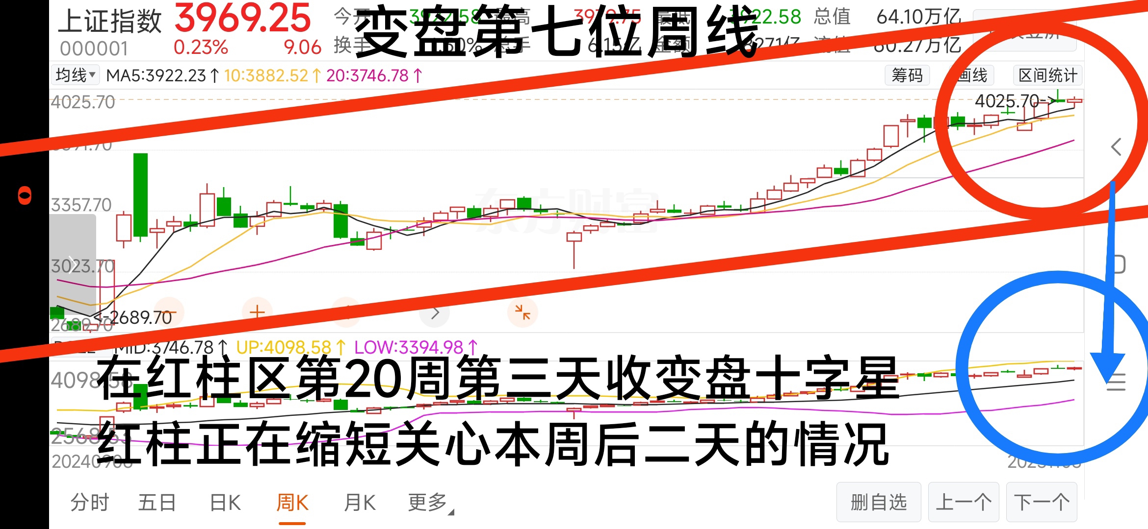 因为周线红柱正在缩短之中,所以第21周变盘向下调整。虽然无法掌控指数涨跌,可以控制好自己仓位。